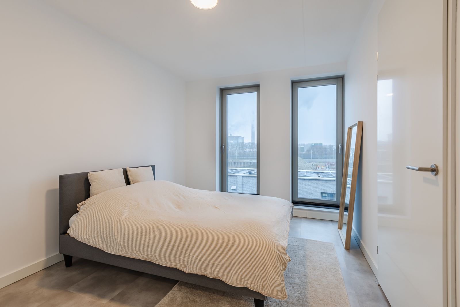 Dankzij de grote raampartijen in zowel de woon- als slaapkamer geniet het appartement van een aangename lichtinval gedurende de dag. De woning is recent opgeleverd, volledig instapklaar en afgewerkt met oog voor detail.