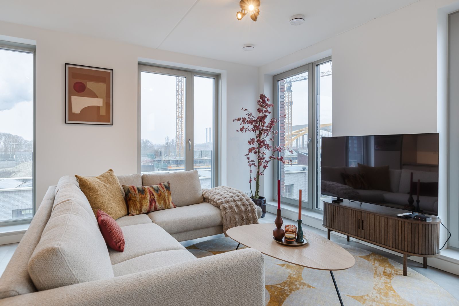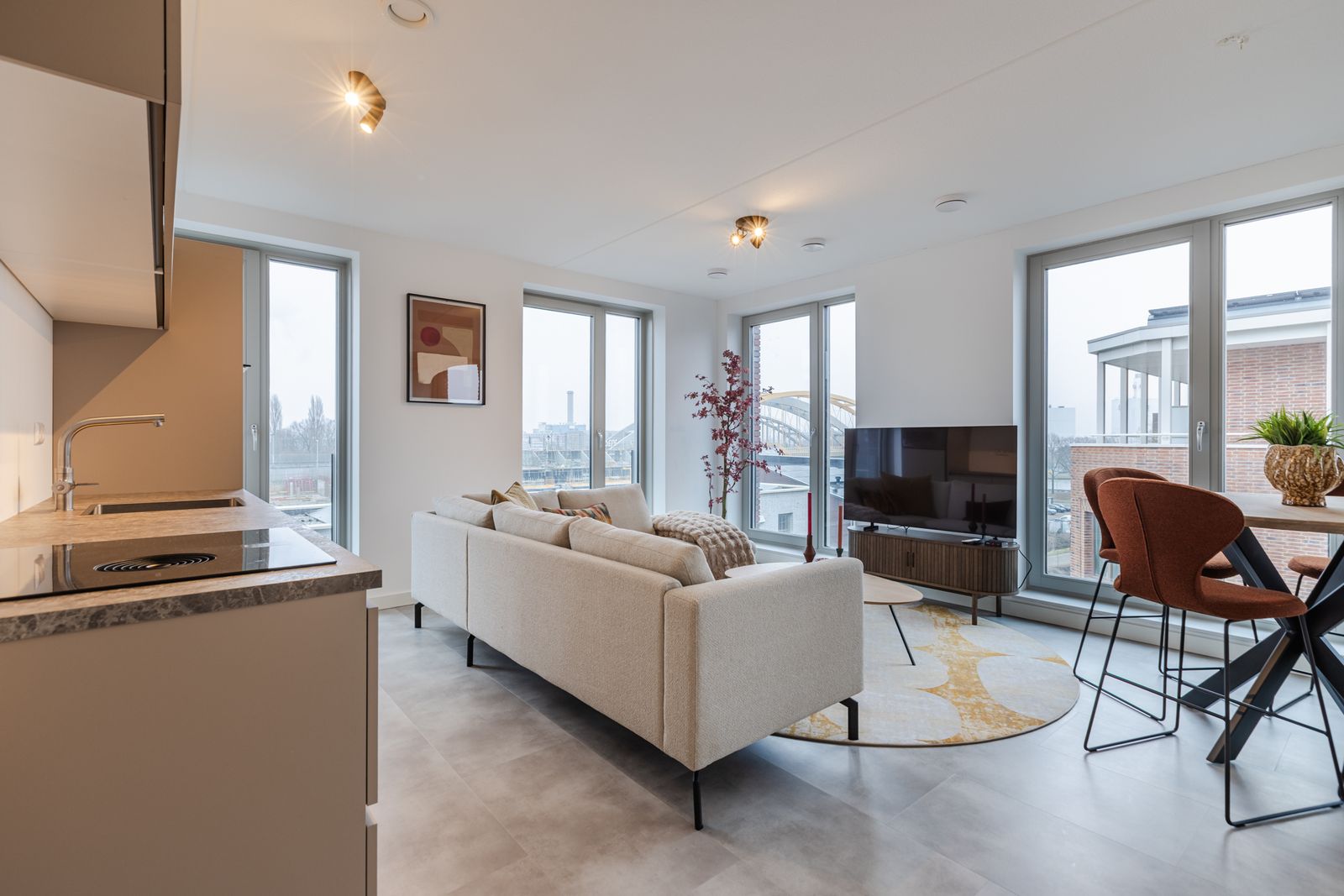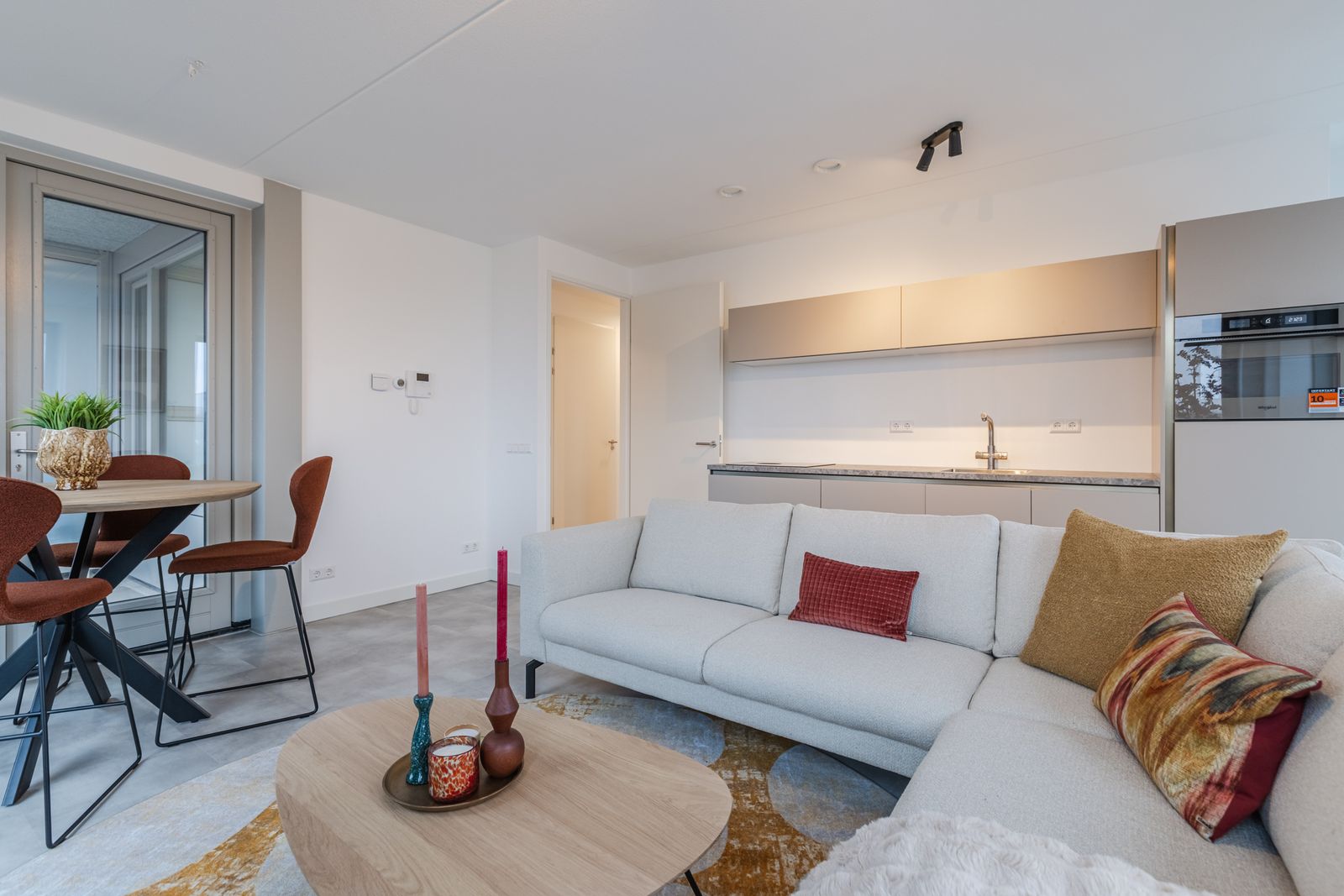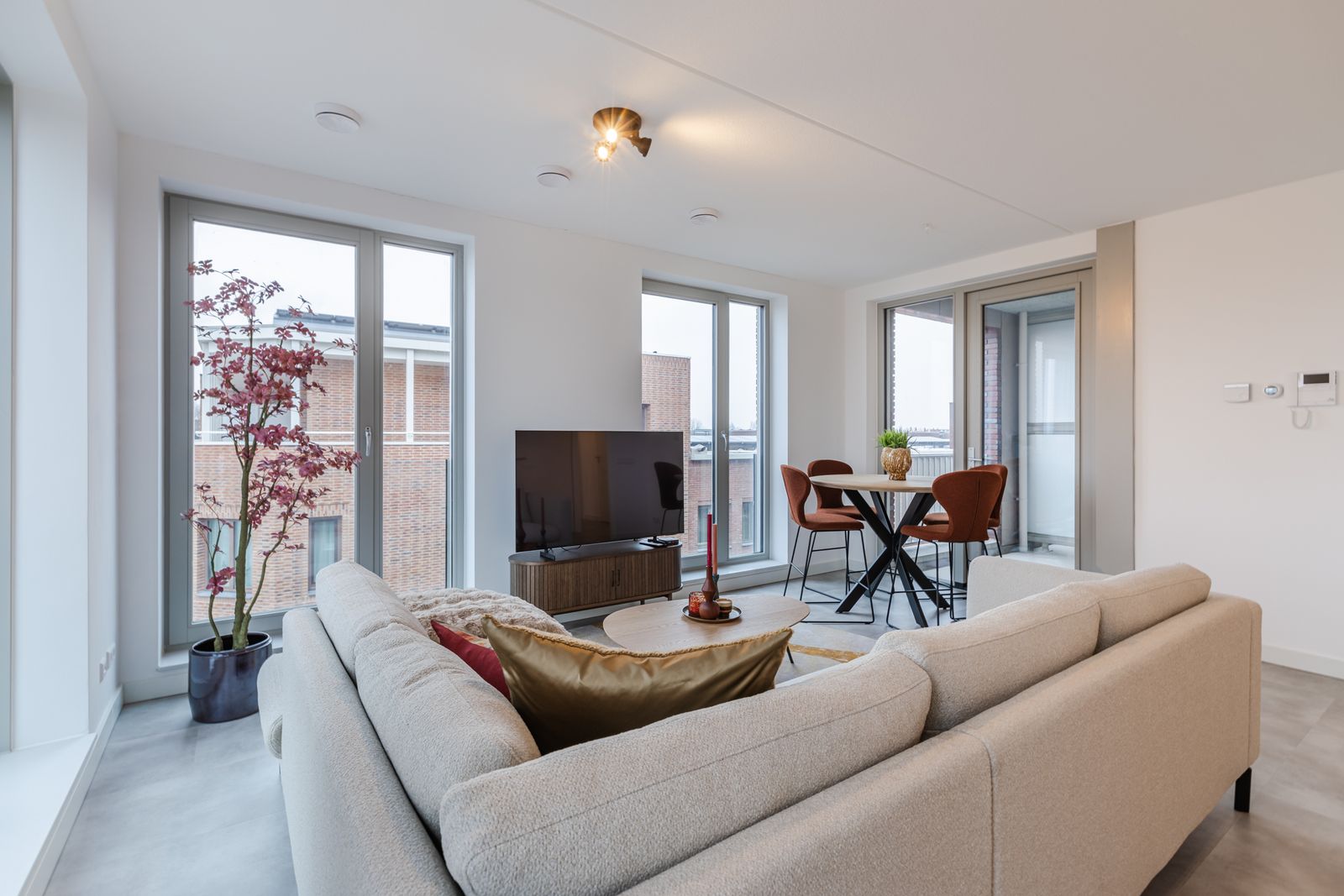 De woonkamer is luxe ingericht en vormt een fijne, open leefruimte met een moderne uitstraling. De aanwezige meubels kunnen in overleg worden overgenomen, wat de woning ook zeer geschikt maakt voor wie direct wil wonen zonder extra investeringen.