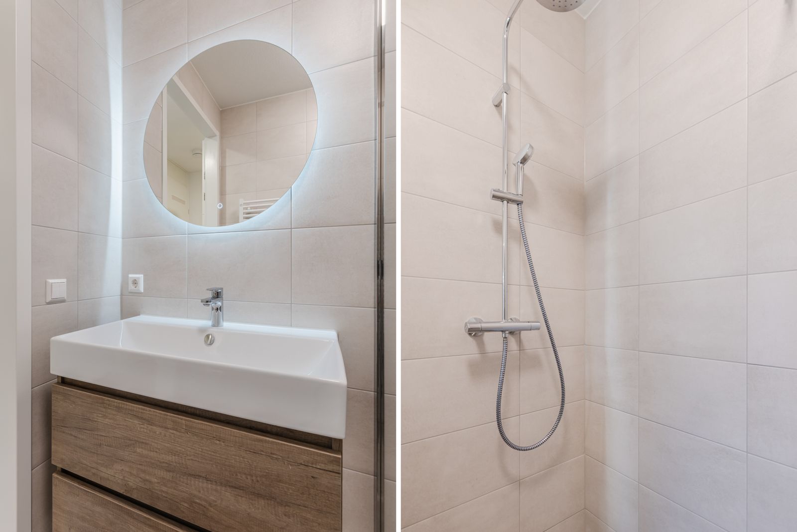 De moderne badkamer is uitgevoerd met: