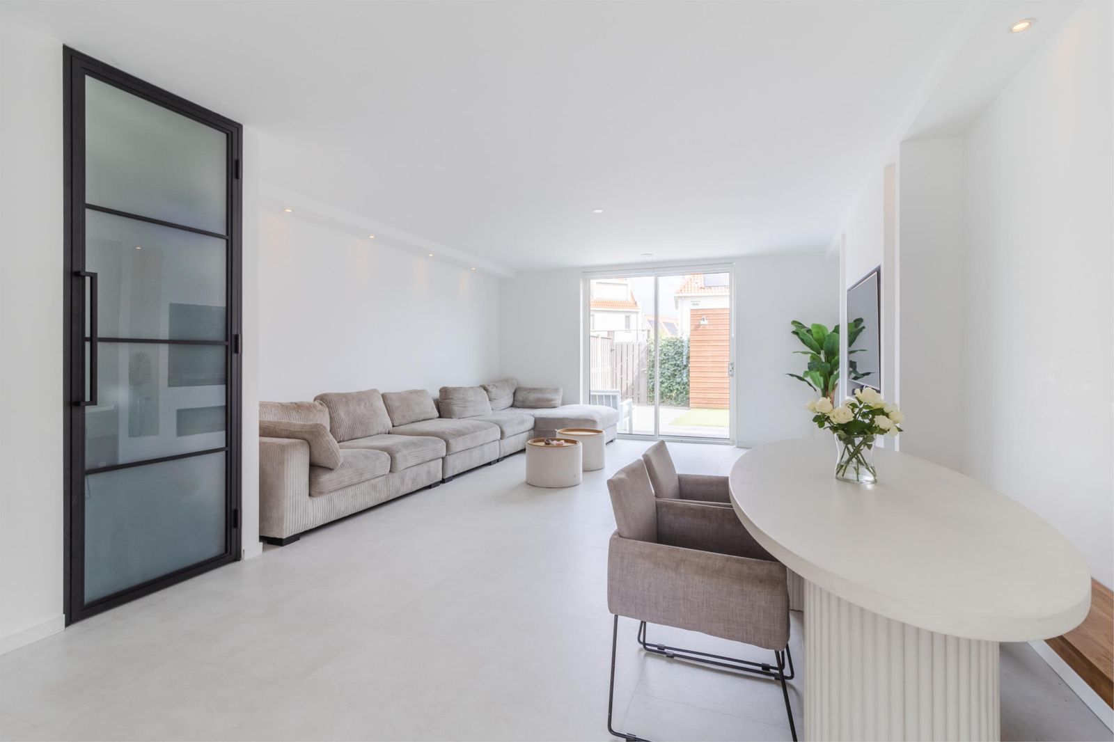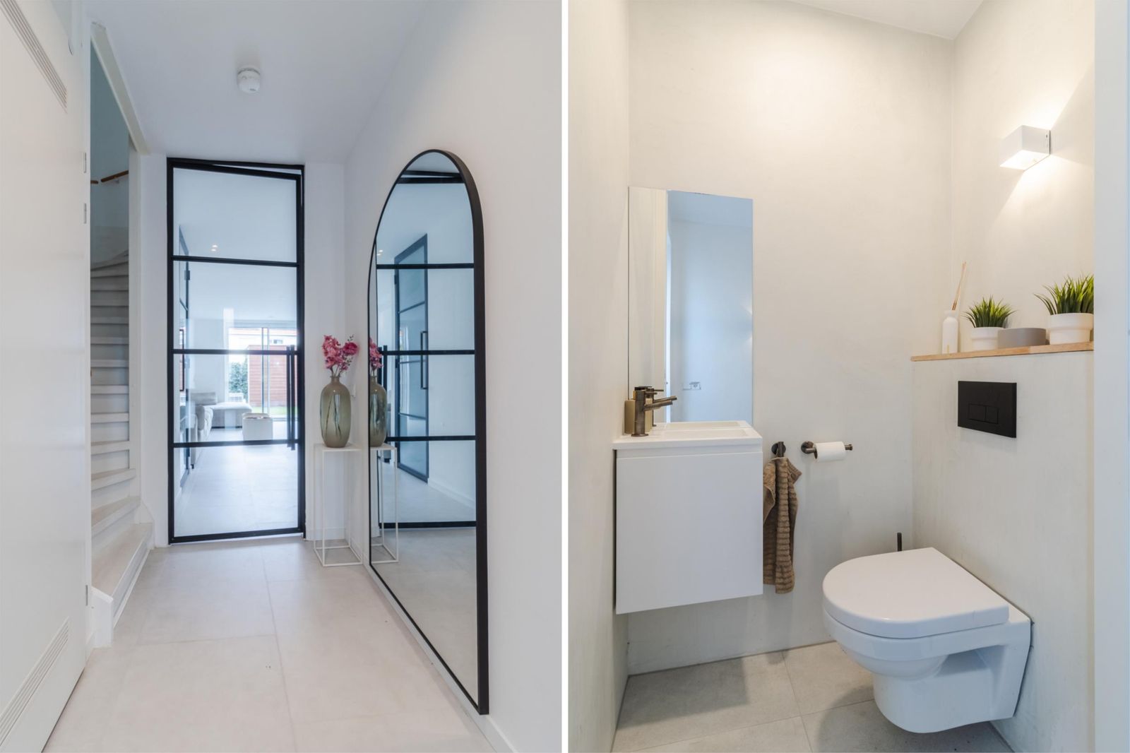 Via de ruime voortuin bereik je de entree met afgewerkte toilet, meterkast en trap. De stijlvolle stalen deur naar de living geeft direct een luxe uitstraling.