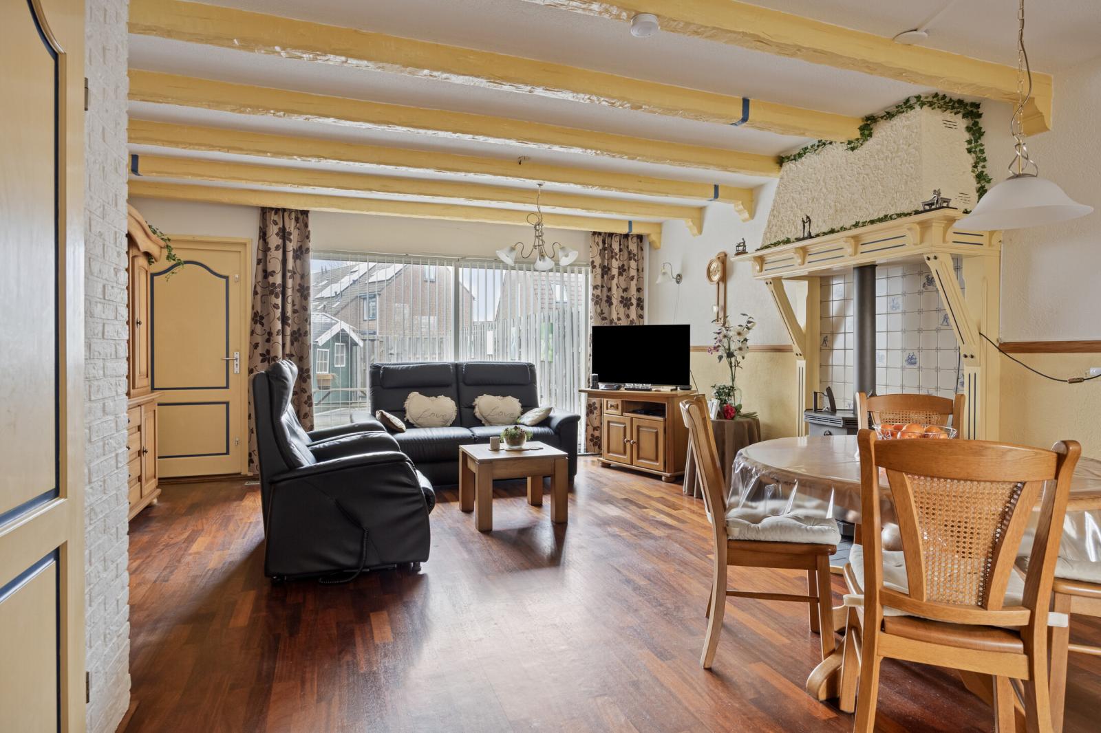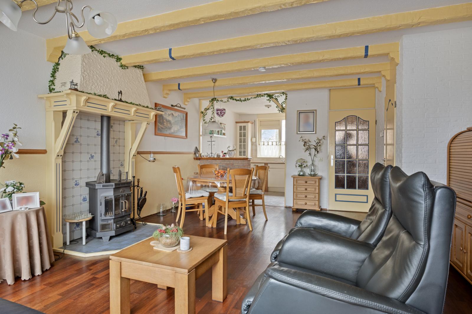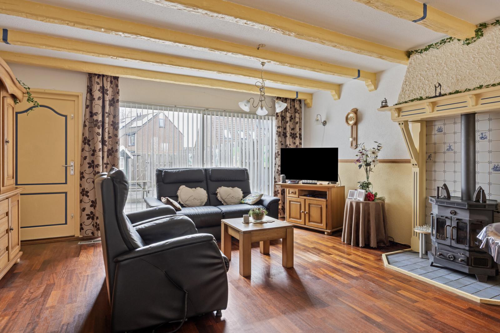 De woonkamer geeft tevens toegang tot de bijkeuken met een loopdeur naar het achtererf.