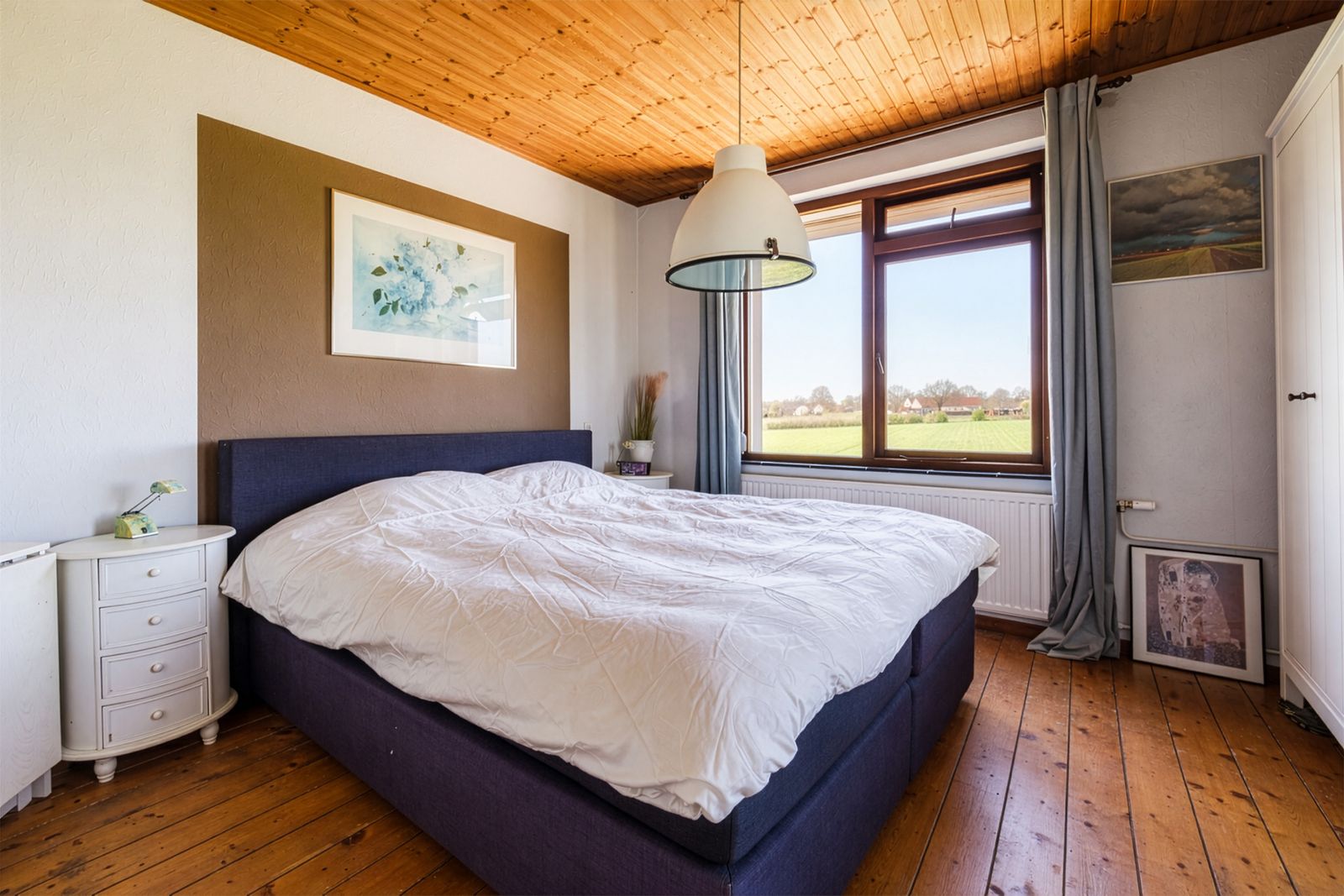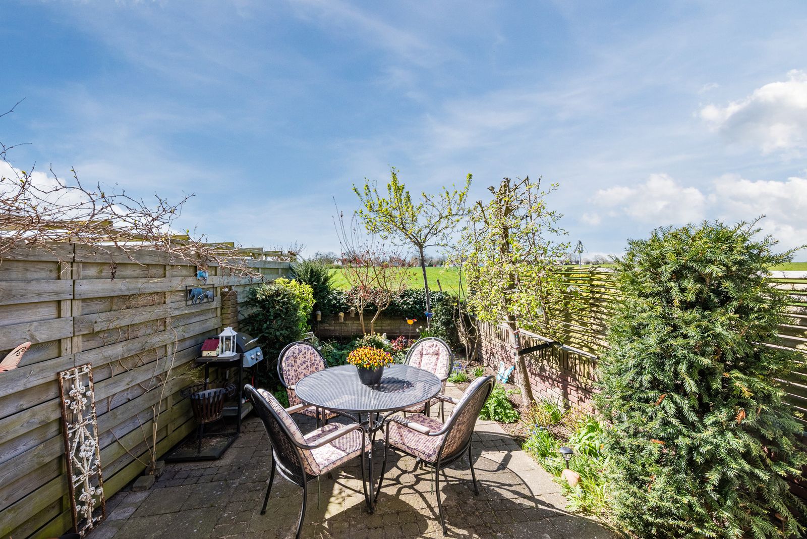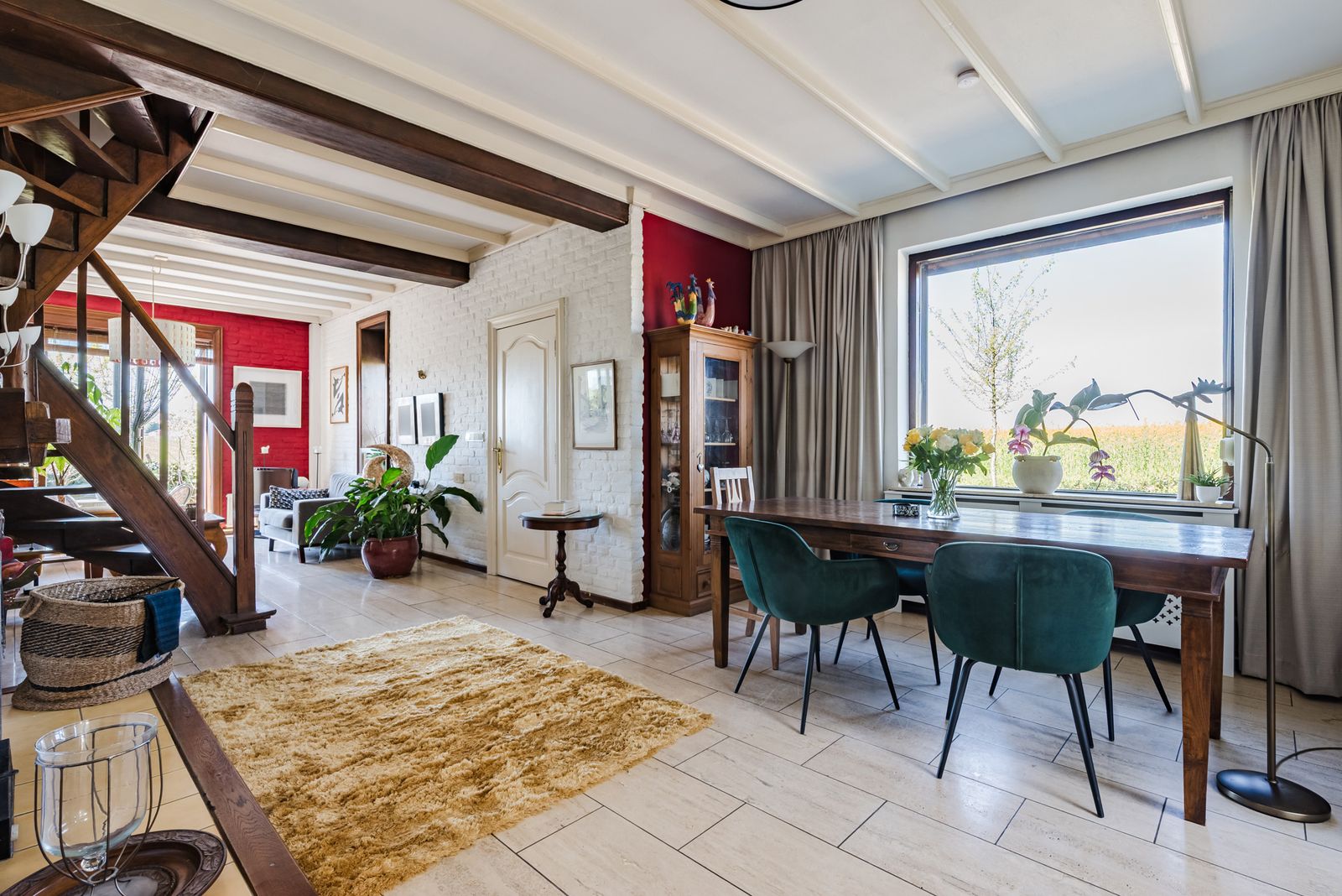Het grote raam in de woonkamer is een levend schilderij. Op dit moment staan de gele bloemetjes van het koolzaad er te wuiven; links lopen koeien vredig te grazen in de wei. Het is een genot om te zien hoe blij ze zijn als ze na de winter weer naar buiten mogen.