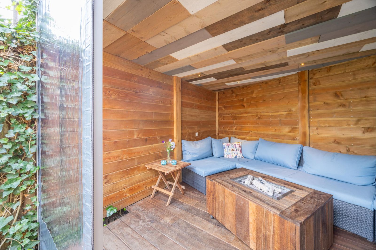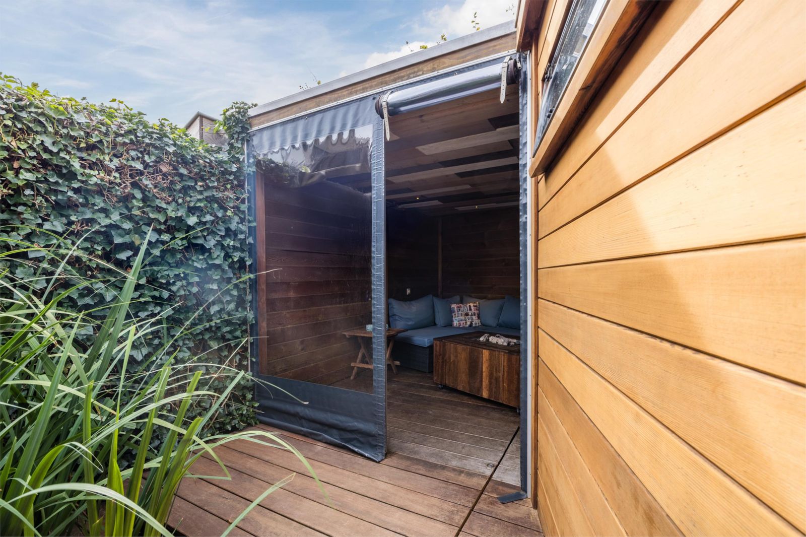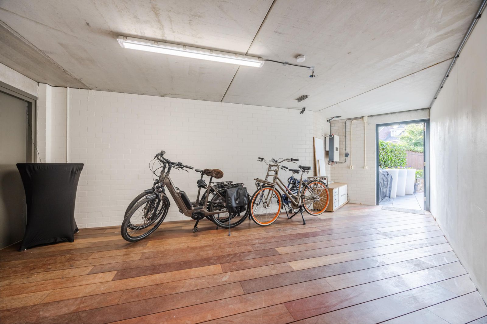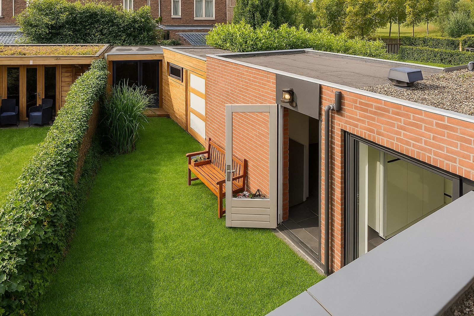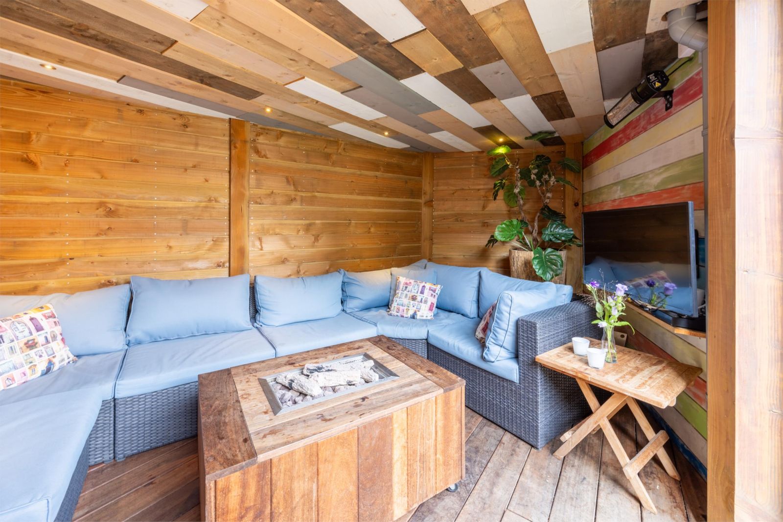 Ruime inpandige garage met luxe houten vloer. De garage is ook ideaal voor opslag, hobby, werkruimte of extra kamer. In de achtertuin is een volledig geïsoleerde duurzaam houten berging aanwezig + een geïsoleerde overkapping die geheel afsluitbaar is.