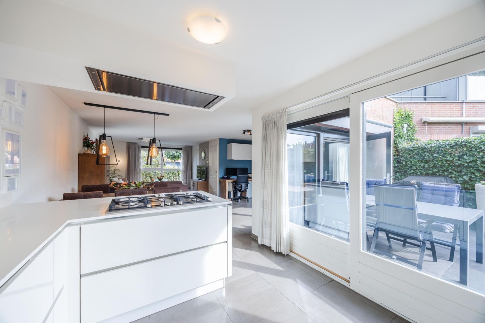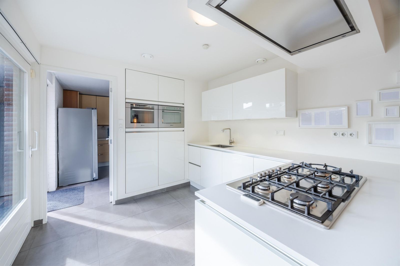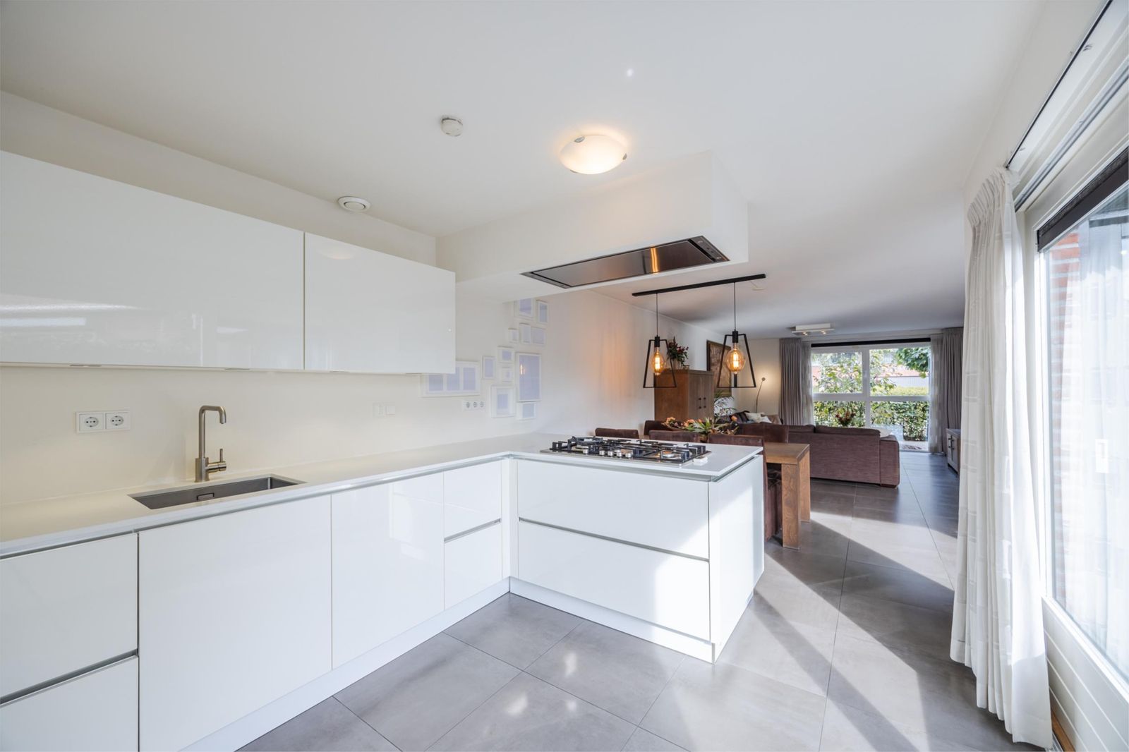Entree met ruime hal, toilet, toegang tot de woonkamer, inpandige garage en trapopgang naar de eerste verdieping. Binnen tref je een zéér ruime, lichte woonkamer met grote raampartijen en een moderne open keuken. Deze is voorzien van alle gemakken, waaronder een vaatwasser, twee combi-ovens, koelkast en een gasfornuis. En aansluitend een bijkeuken.