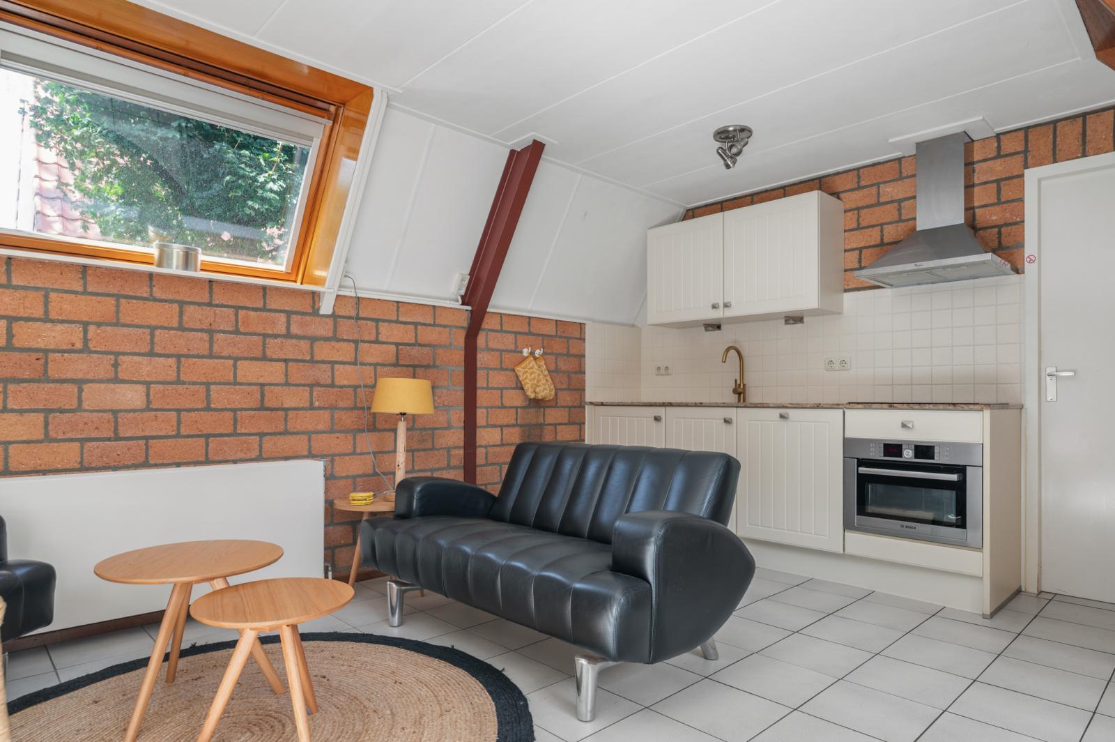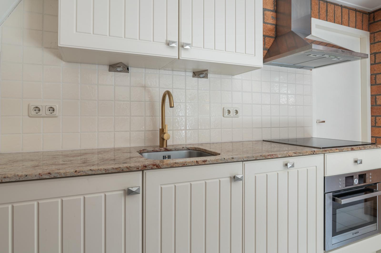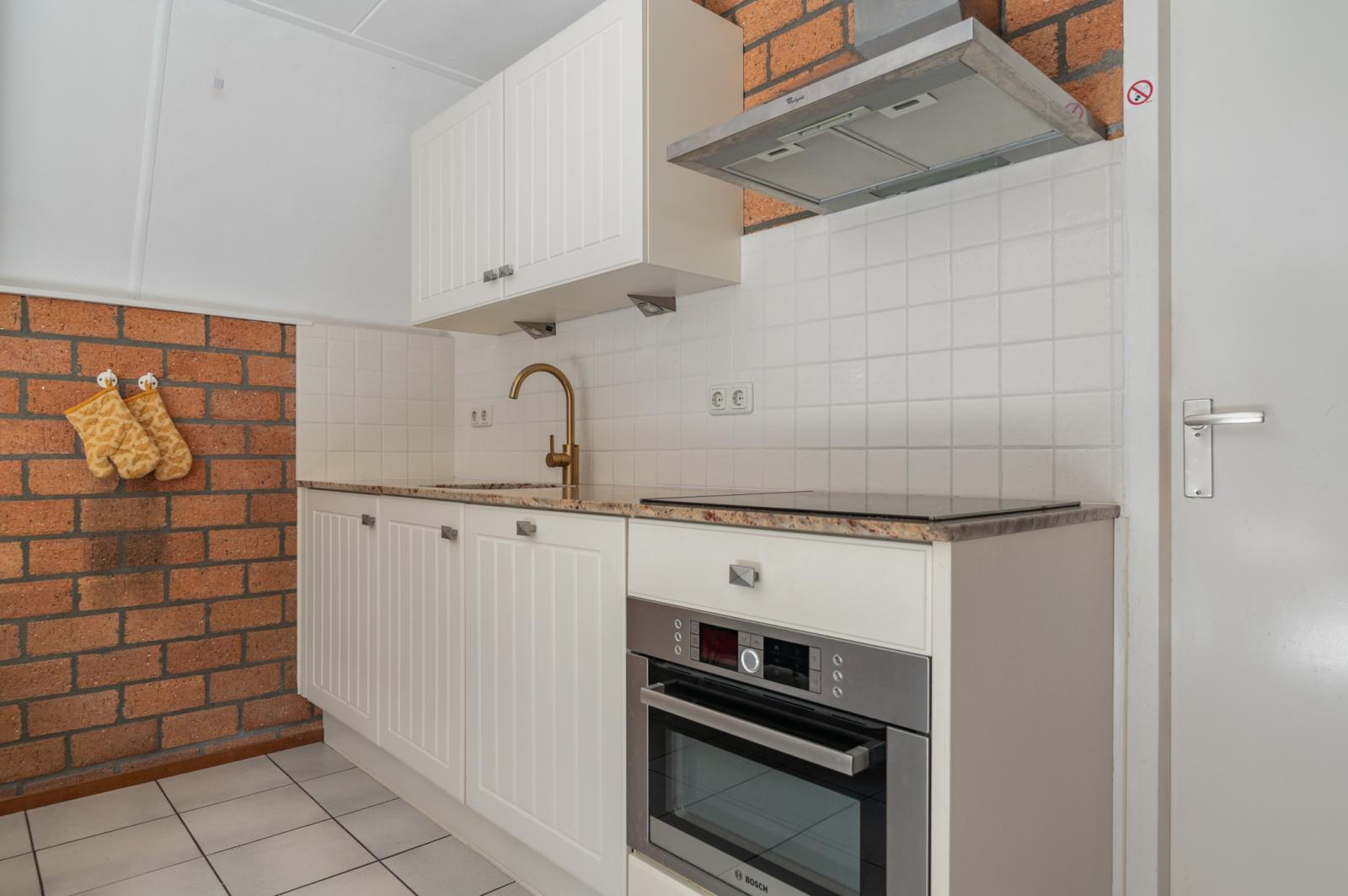 De keuken is netjes en compleet uitgerust met een inbouwvaatwasser, oven, koelkast en een inductiekookplaat met afzuigkap. Een fijne plek om te koken en contact te houden met de woonkamer.