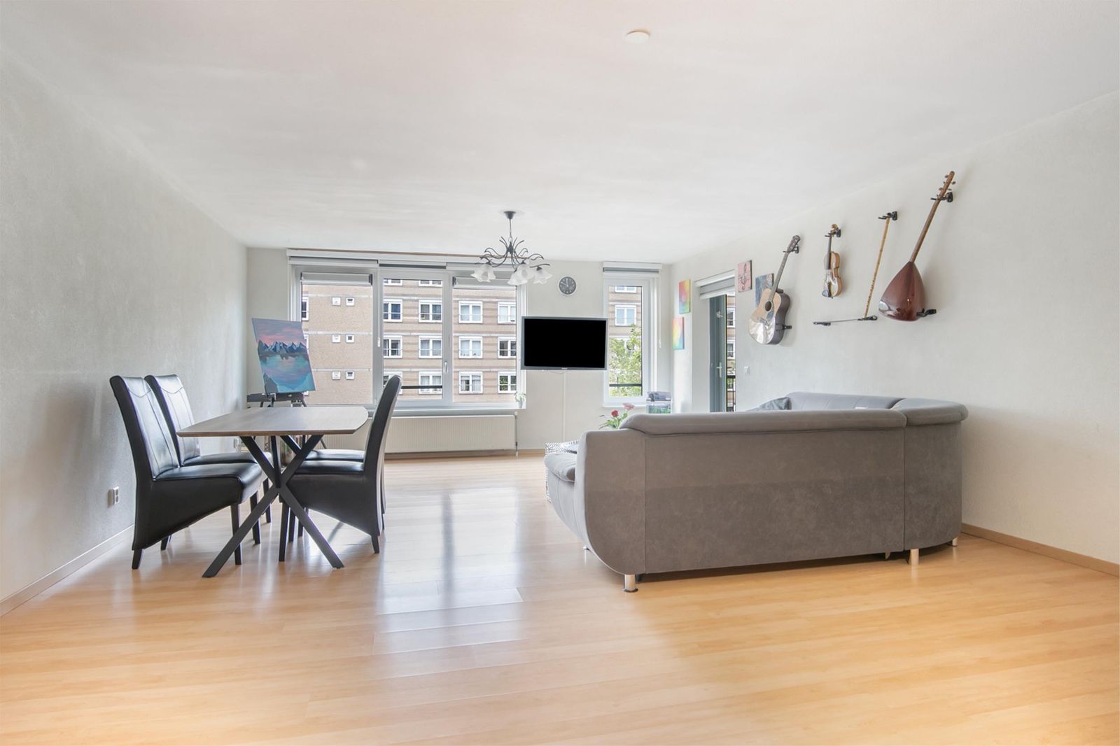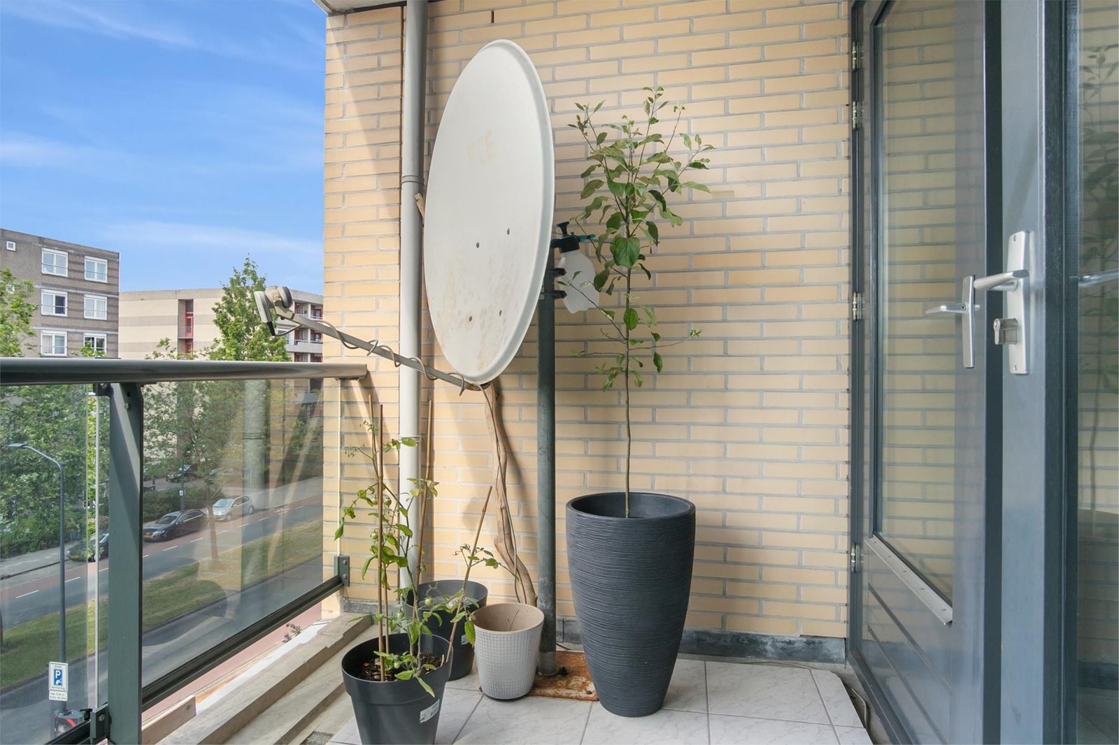 De woning is op de derde etage gelegen van een zeer goed onderhouden complex waarbij alle kozijnen en ramen aan de buitenzijde recent (Juni 2023) zijn vervangen. In de woning zelf merk je niets van het verkeer aan de voorzijde en kan er vanwege het voordelig energielabel (A) zeer comfortabel gewoond worden. De hal van de woning is middels lift of trap te bereiken en geeft aan alle ruimten toegang waaronder het separate toilet en de technische ruimte met was- droogmachine opstelmogelijkheid. De woonkamer is licht en ruim van opzet met meer dan voldoende ruimte voor een grote zithoek, eethoek en ruimte voor een werkplek. Tevens komt de woonkamer uit in de loggia. De keuken is volledig uitgerust met 4-pick gaskookplaat, vaatwasmachine, oven en koel- vriescombinatie. De hoofdslaapkamer geeft toegang tot het zonnige balkon op het Zuiden en de tweede slaapkamer is met grote diepe vaste kledingkast met 3 bedden ( 200cm*90cm ). Desgewenst is er een bureau in dezelfde stijl voorhanden die teruggeplaatst kan worden. In de kelder is een fietsenberging en extra ruimte voorhanden met eigen stopcontact ( erg handig voor klussers ) en extra handig om spullen kwijt te hebben.