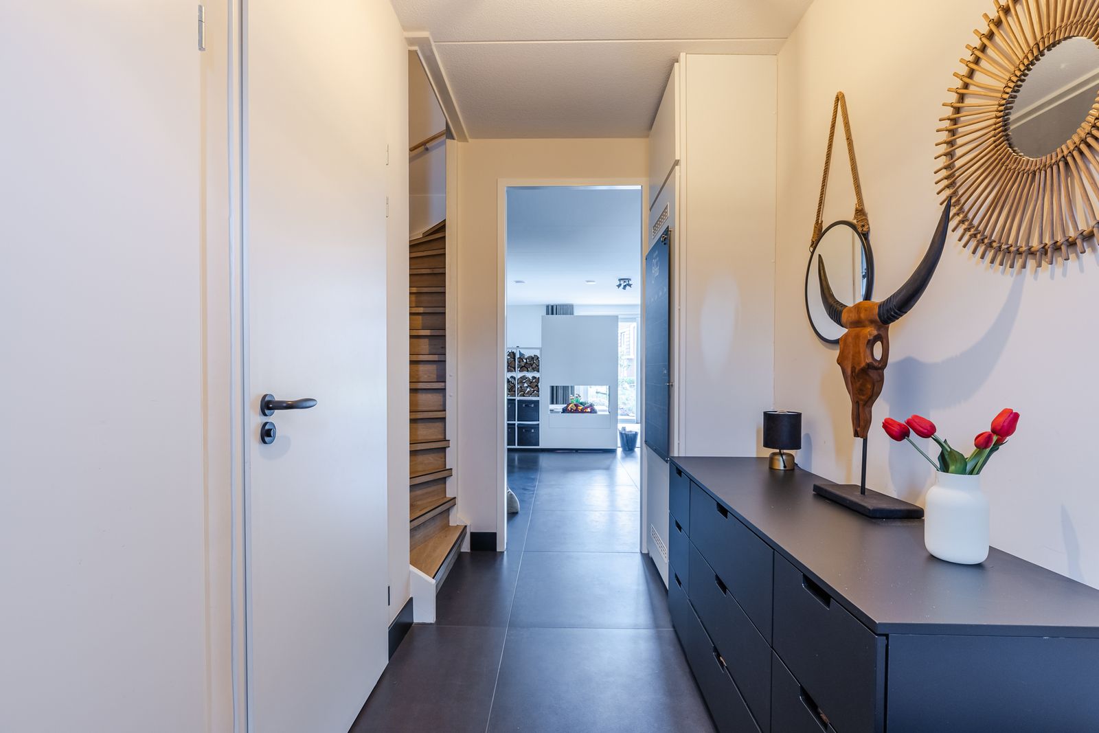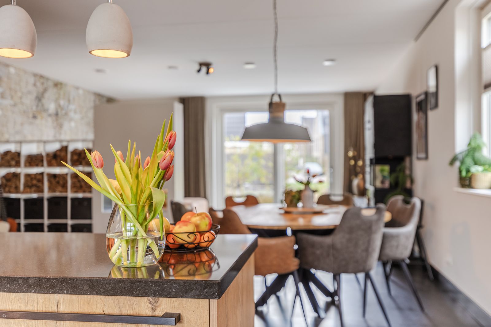 Luxe ontmoet hier de toekomst. De woning is volledig gasloos en extreem comfortabel dankzij de bodemwarmtepomp en 14 zonnepanelen. Met 0-op de meter bespaar je enorm op je maandelijkse lasten. De keuken is volledig ingericht met een Bora-kookplaat, stoomoven en een warmwaterkraan. Overal in het huis geniet je van een hoogwaardige afwerking: van de Smart-Velux ramen op zolder en de kwaliteitsvloeren tot de horren en stijlvolle raambekleding in iedere kamer. De spouwloze muren zorgen voor absolute stilte in huis.