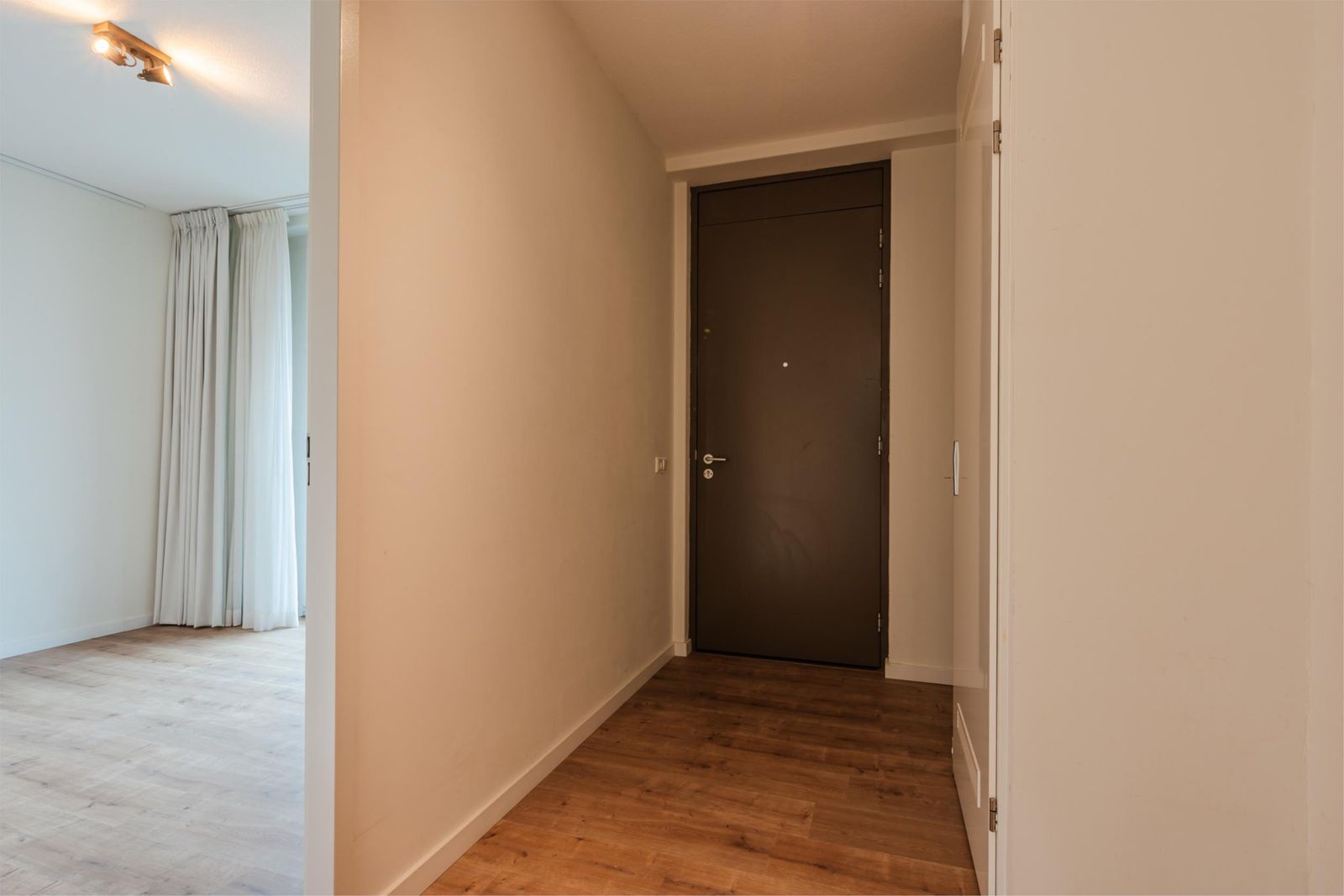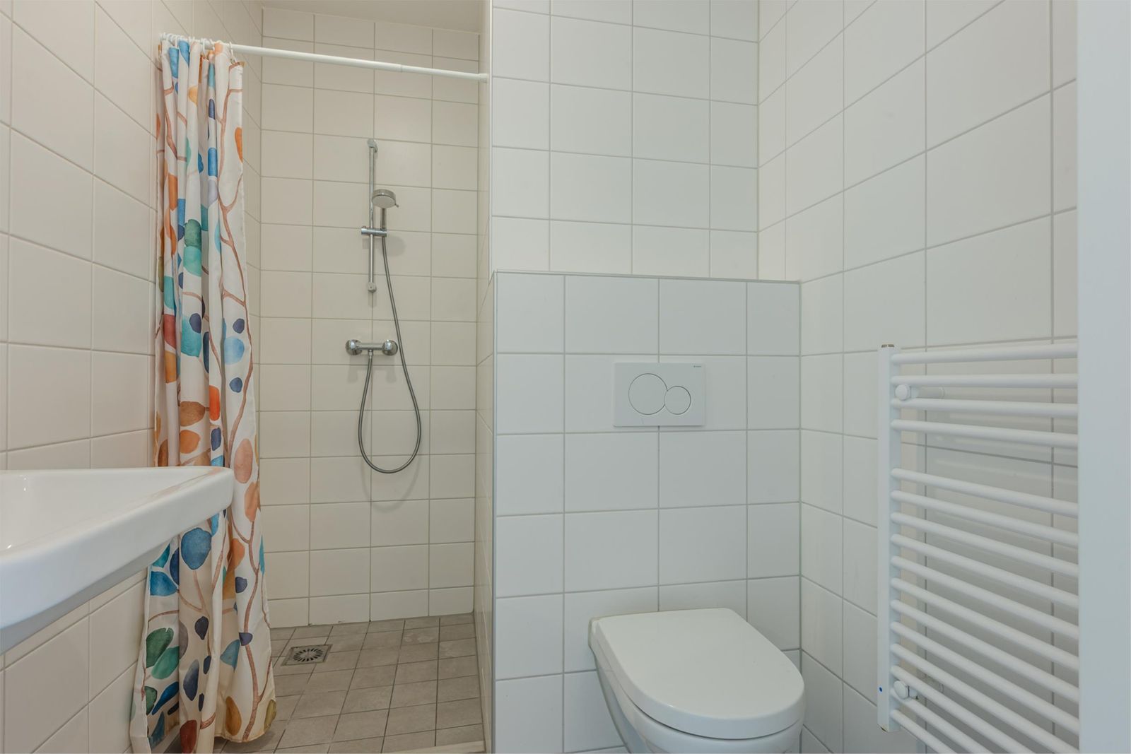 Het appartement beschikt verder over een royale slaapkamer (10,2 m2), een moderne badkamer met douche, toilet en designradiator en een aparte wasruimte. Dankzij de logische indeling voelt de woning licht en ruimtelijk aan, met een duidelijke scheiding tussen woon- en slaapgedeelte.