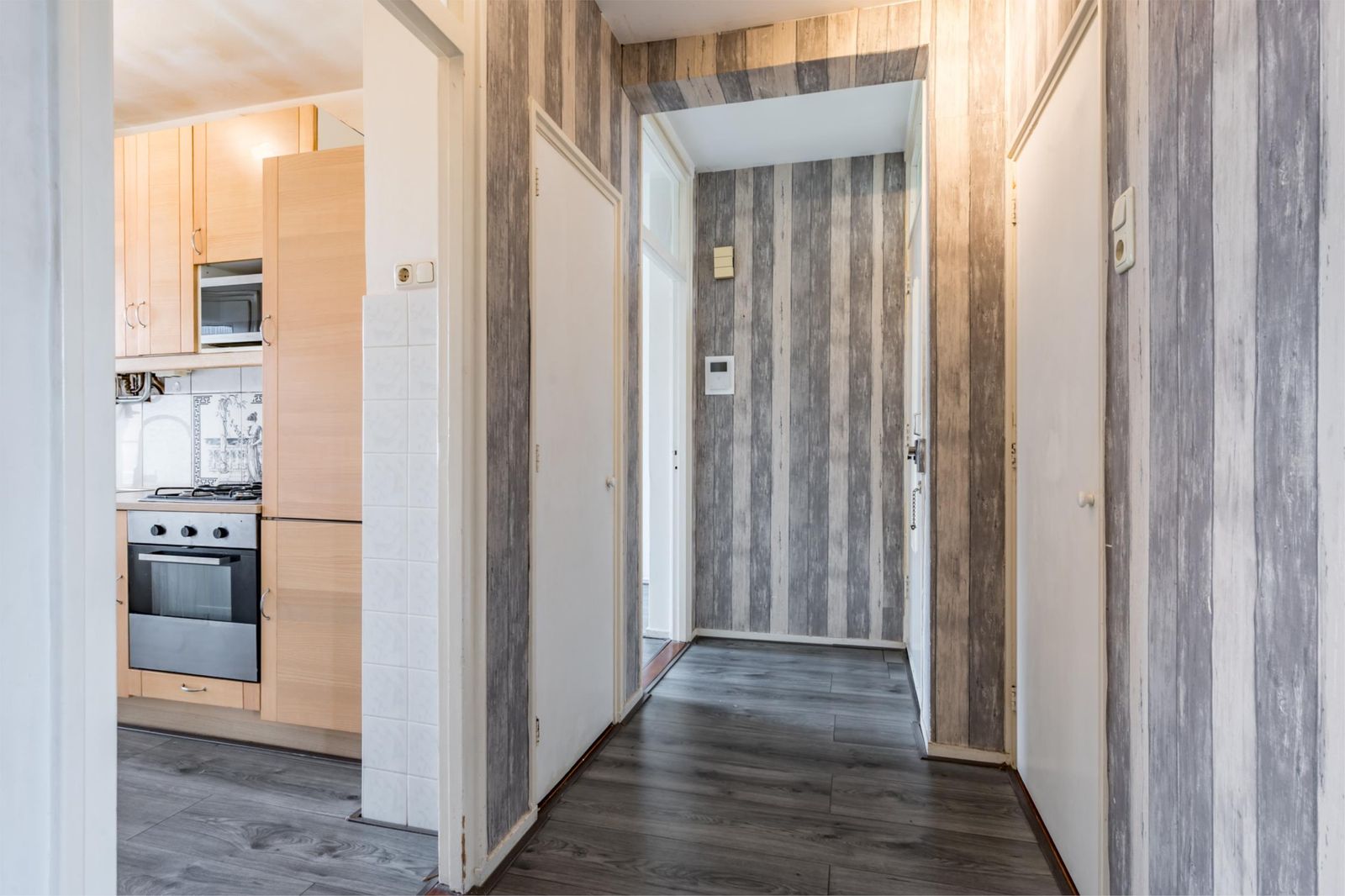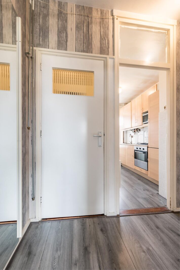 Binnenkomst in de hal met toegang tot alle vertrekken. De lichte woonkamer biedt volop ruimte voor een gezellige zit- en eethoek. De keuken is praktisch ingericht en voorzien van voldoende kastruimte. Vanuit de aangrenzende slaapkamer stap je zo het balkon op – een fijne plek om even buiten te zitten.