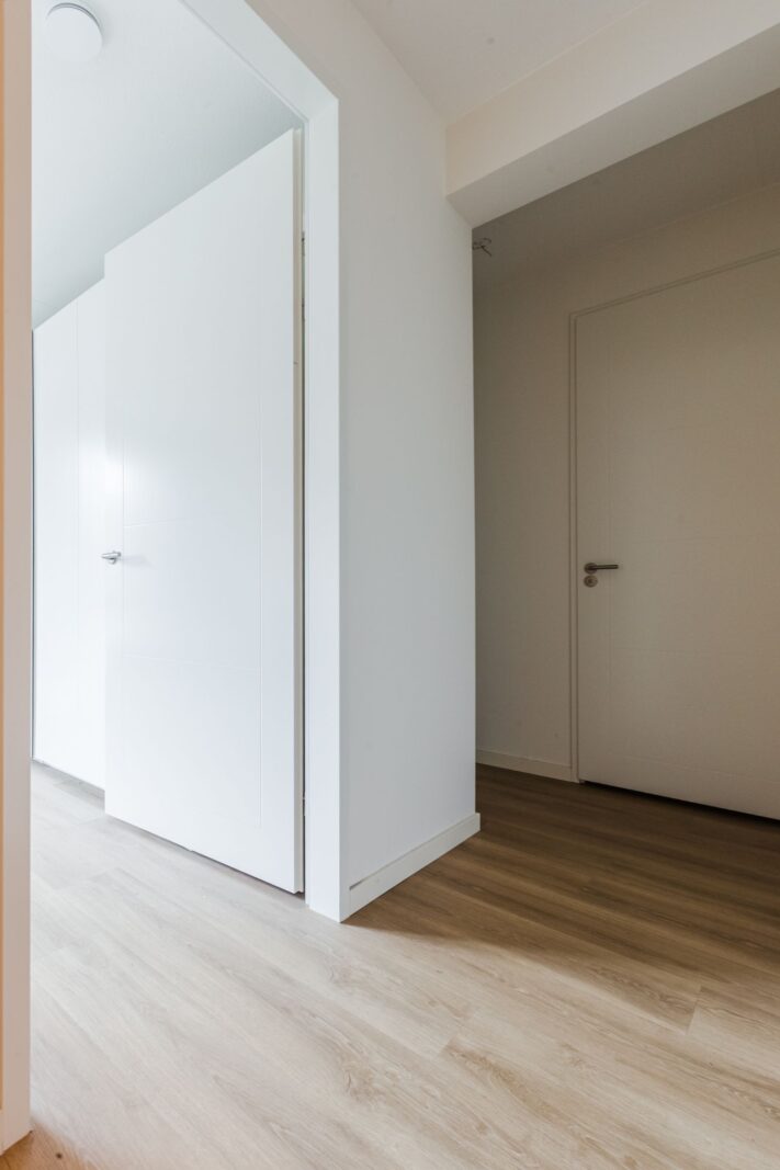 De moderne badkamer is fraai afgewerkt met een ruime inloopdouche en een wastafelmeubel. Daarnaast is er een aparte toilet en en verder is er een praktische berging met aansluiting voor wasmachine en droger, plus extra opbergruimte. Het gehele appartement is voorzien van vloerverwarming- en koeling.