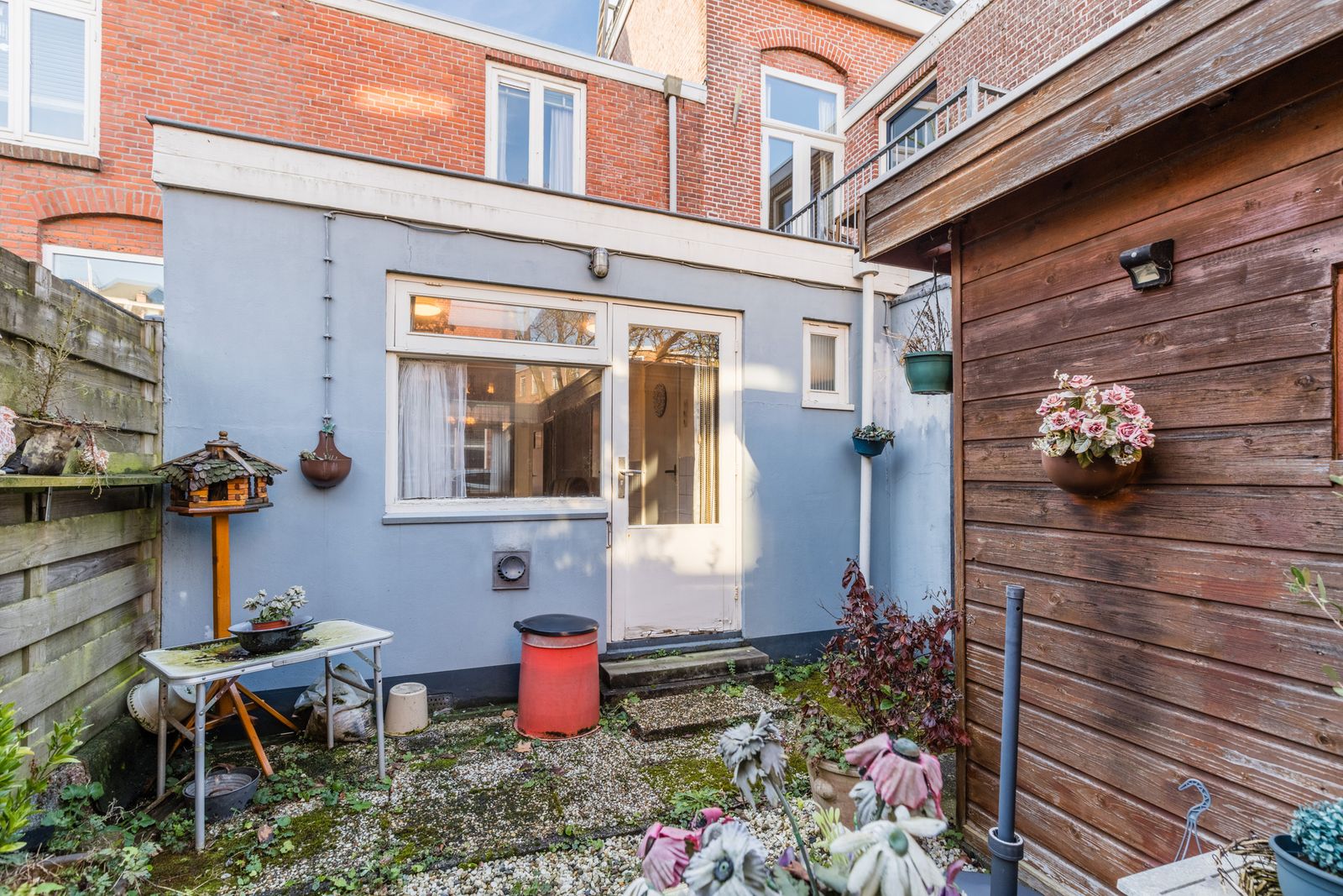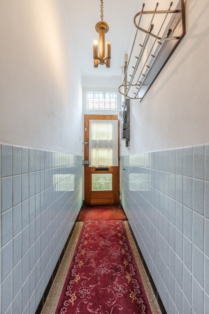 De woning nodigt uit om - net als de rest van de straat- het woonoppervlak met een extra verdieping uit te breiden.
