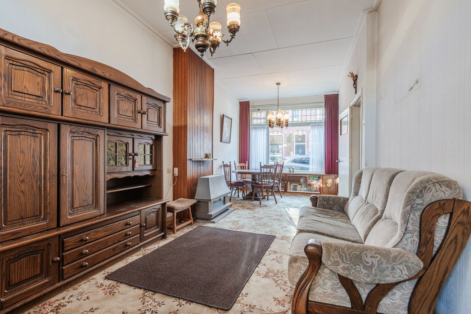 Bij aankomst valt direct de charmante uitstraling van de woning op. De karakteristieke bouw en prettige lichtinval geven de woning een warme sfeer via glas-in-lood ramen. De woonkamer beneden is aansluitend aan een uitbouw uit 1980 waarin de keuken, douche en toiletgroep is.