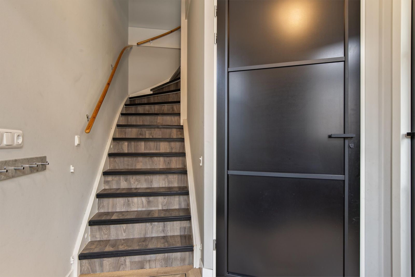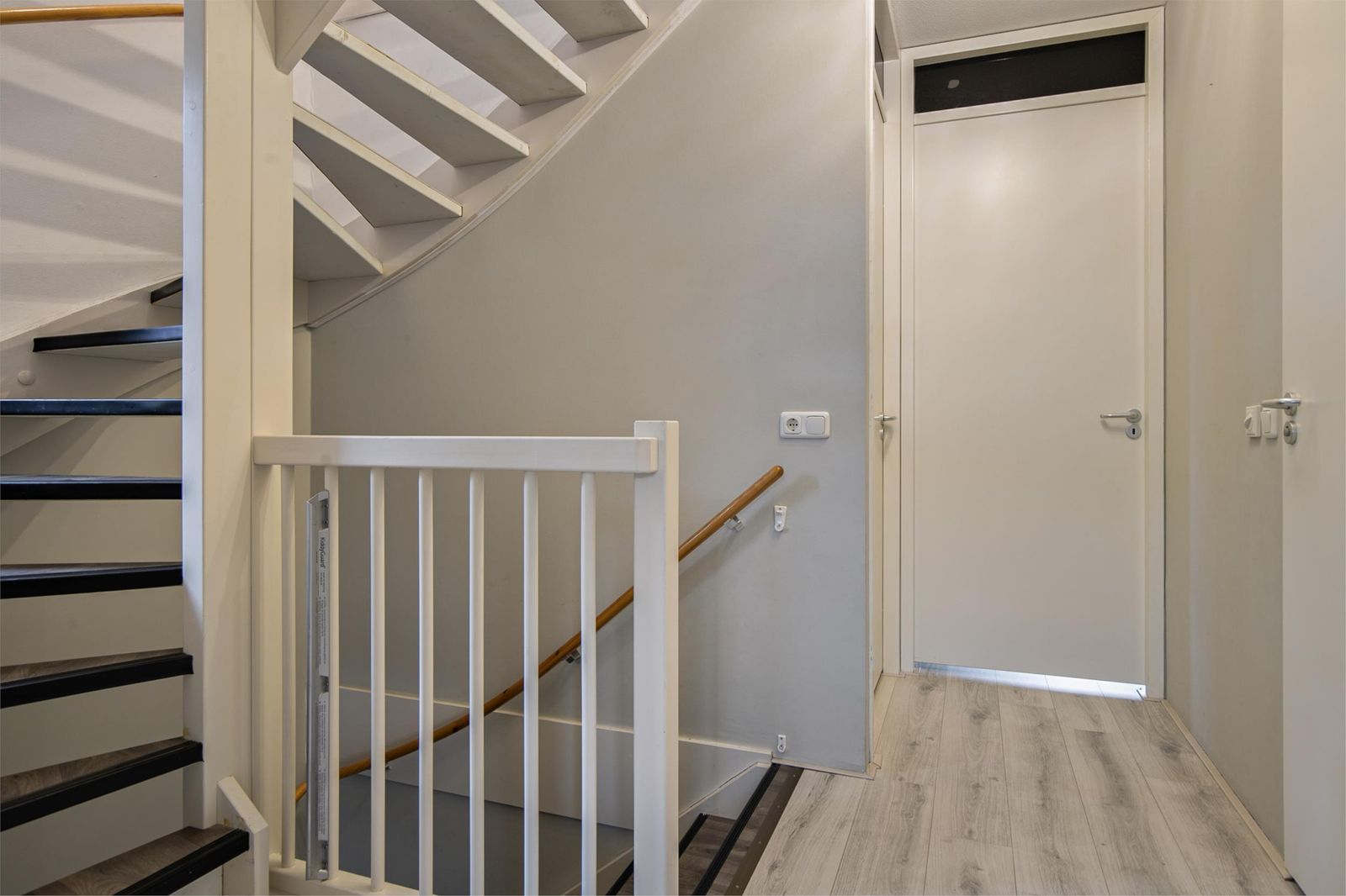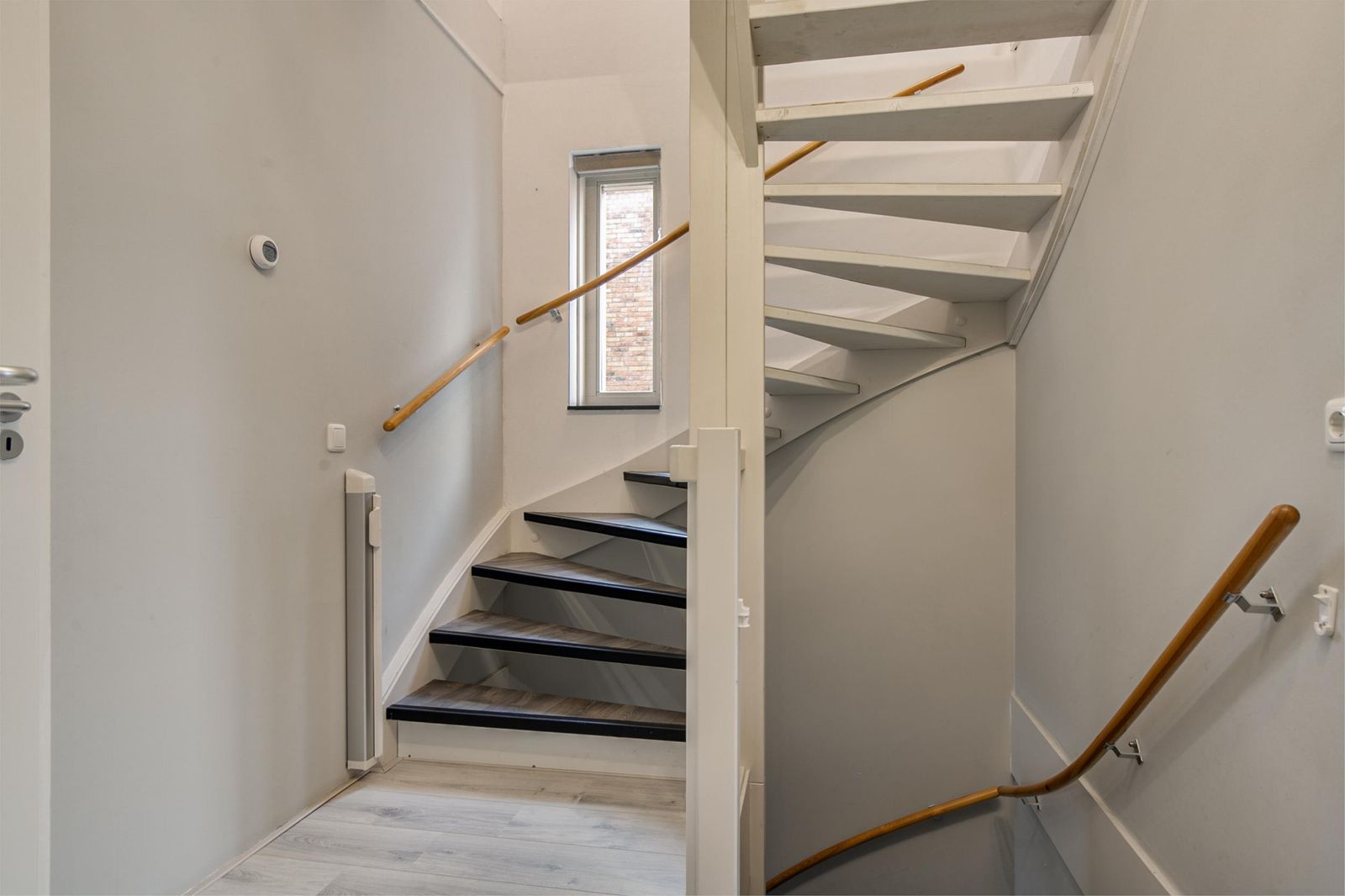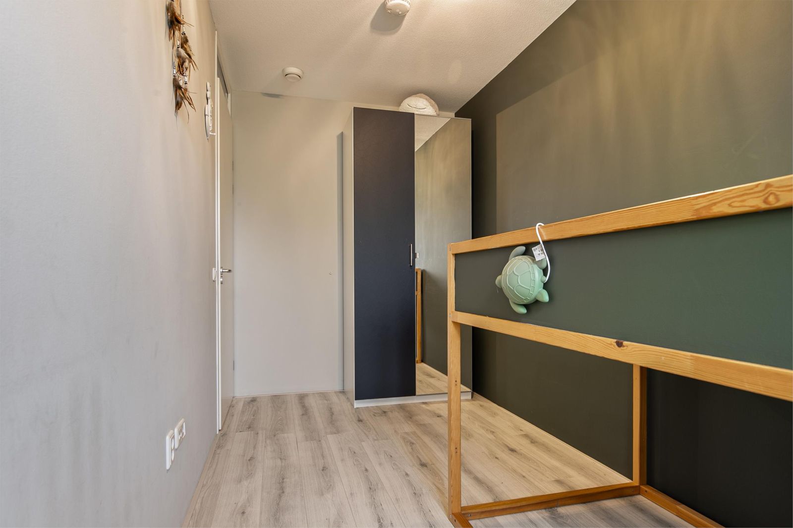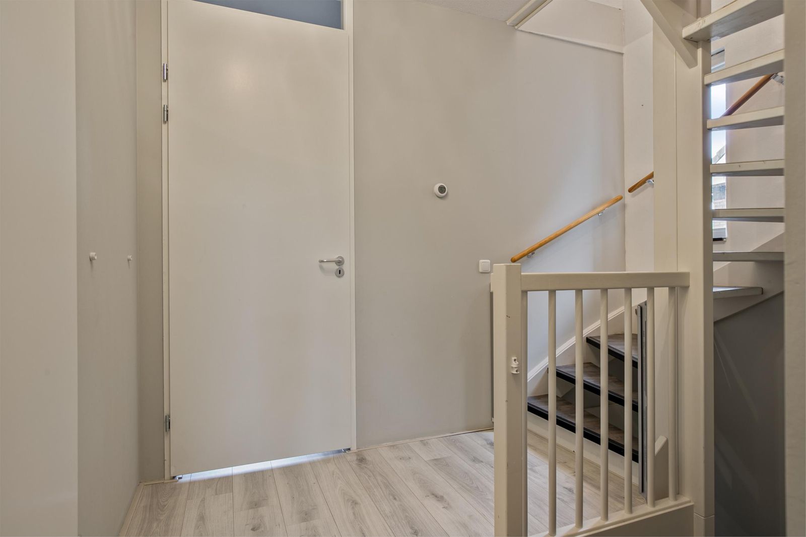 The stairs take you to the top floor. Here you will find two spacious bedrooms and a laundry room with a washing machine connection. On the first and second floor the heat comes through radiators and has its own thermostat. You can also use a loft ladder to the attic where you have extra storage space.