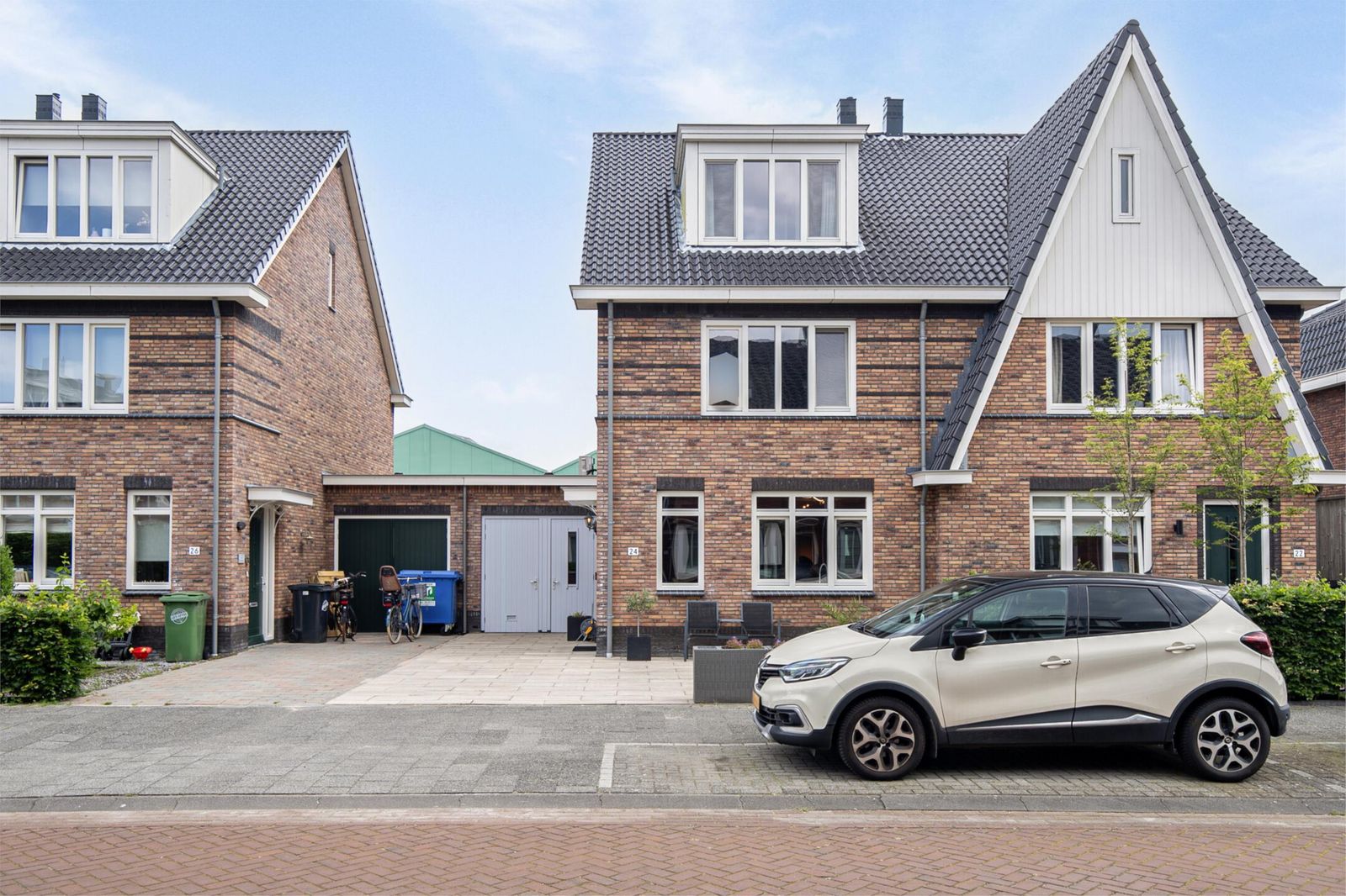 -De oprit en de voortuin zijn met puin gegoten, tegen verzakking, waardoor er extra parkeergelegenheid is gecreëerd.