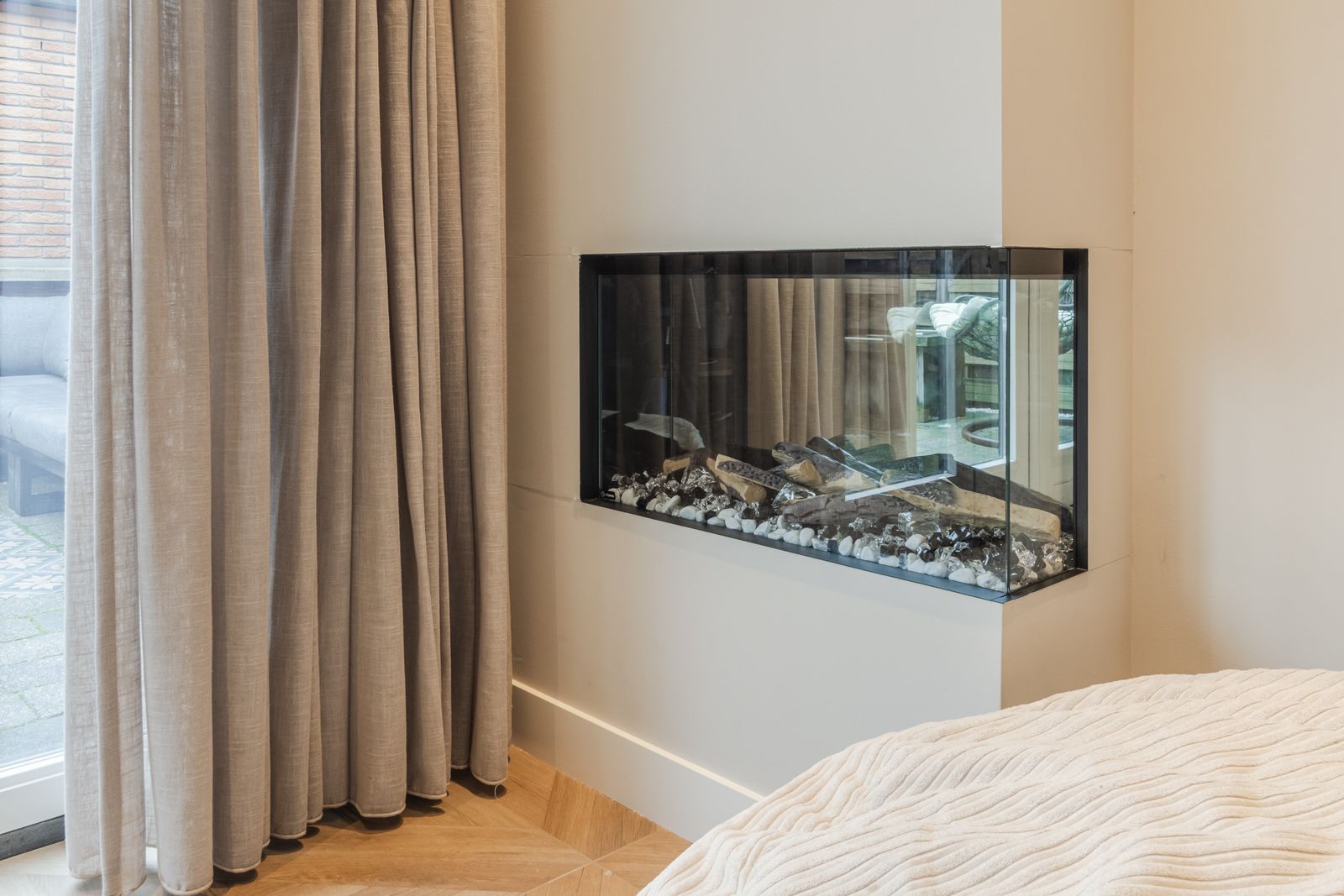 Overloop met trapopgang. Royale slaapkamer aan de achterzijde met inloopkast (voorheen een extra slaapkamer). Luxe badkamer met inloopdouche, ligbad, toilet, wastafelmeubel en vloerverwarming. Aan de voorzijde bevindt zich een ruime tweede slaapkamer.