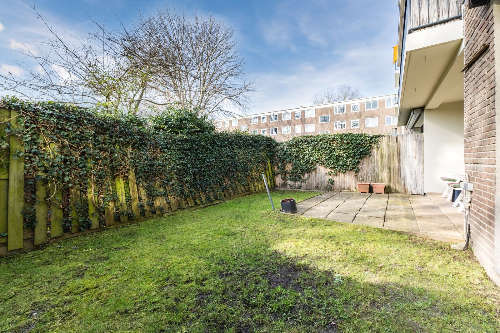 Via de gemeenschappelijke entree bereik je aan de rechterkant de voordeur van dit 3 kamer appartement. Bij binnenkomst een ruime hal met toegang naar alle vertrekken. Aan de straatzijde de keuken en een slaapkamer. Aan de achterzijde de grote slaapkamer en de lichte woonkamer, beide met toegang naar de royale tuin gelegen op het zuiden. De woning is grotendeels voorzien van dubbelglas. De badkamer is voorzien van douche en wastafel. In de hal is er nog een apart toilet. In de gemeenschappelijk ruimte is er nog toegang tot de eigen externe bergruimte van circa 6 vierkante meter.