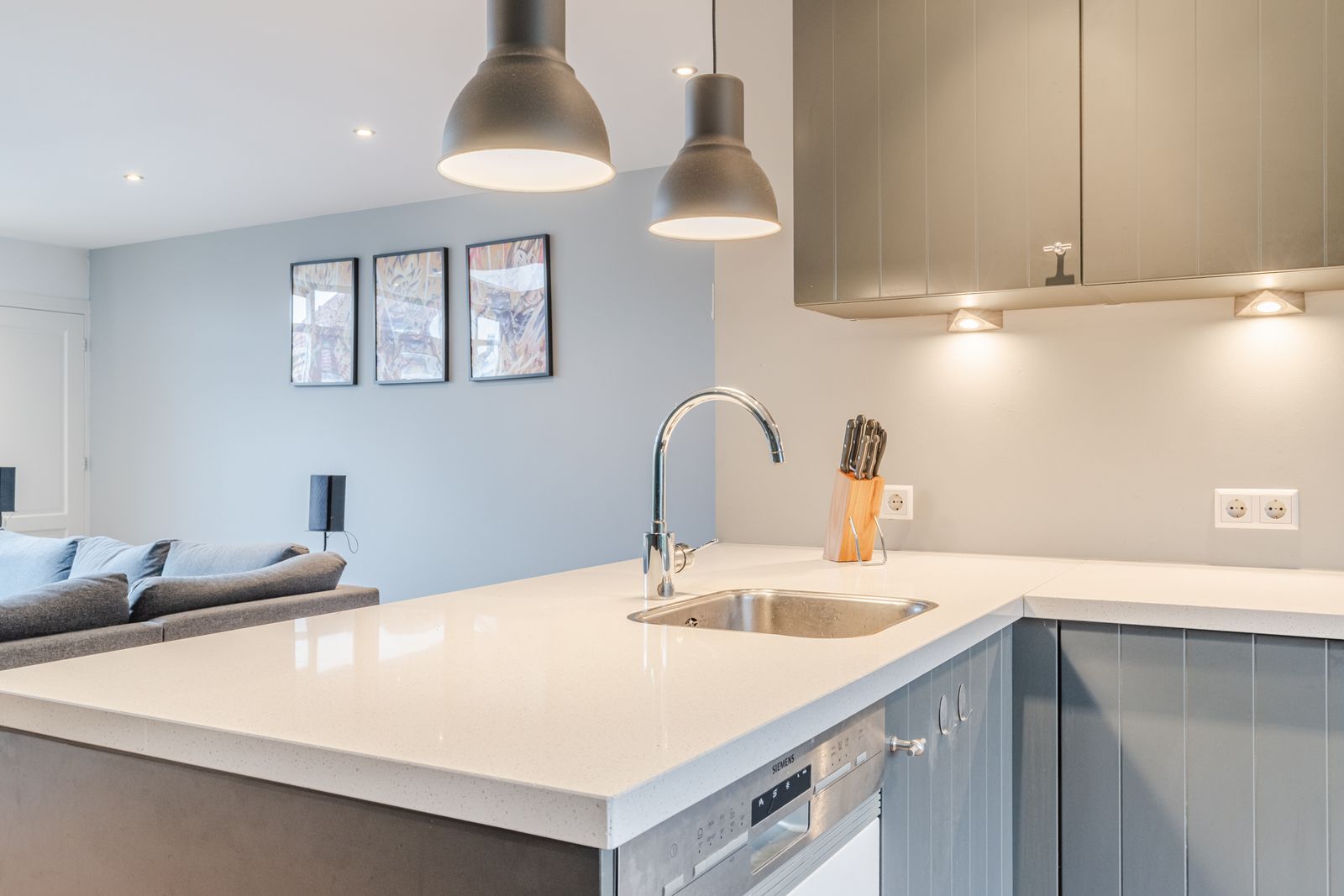 • Aan de voorzijde bevindt zich een open keuken uit 2012, voorzien van hedendaagse apparatuur.