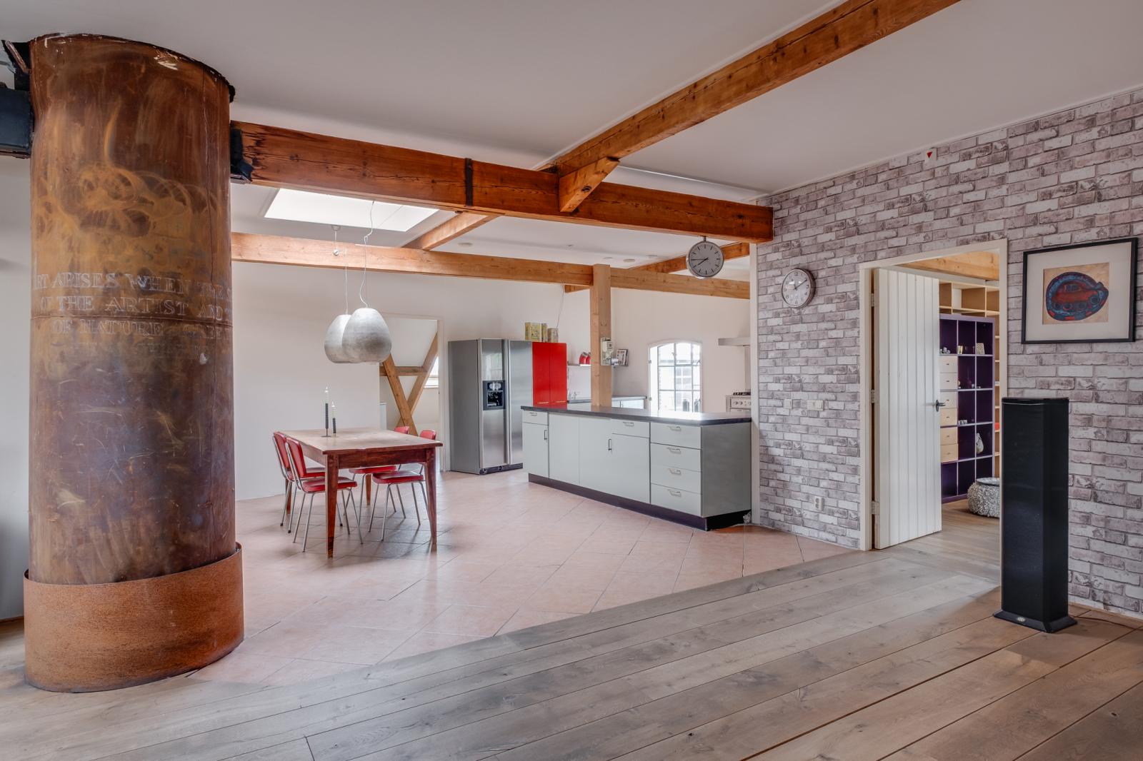 Een woning met karakter, ruimte en een verhaal. Hier woont u in een indrukwekkend industrieel monument, waar originele details uit het verleden behouden zijn gebleven en bijdragen aan de unieke sfeer: denk aan de imposante oude laaddeuren die nu dienstdoen als charmant Frans balkon, het originele hijsrad, een dubbel trijshuis, de kenmerkende (smederij)schoorsteen van de voormalige smederij en de robuuste zichtbare constructiebalken.