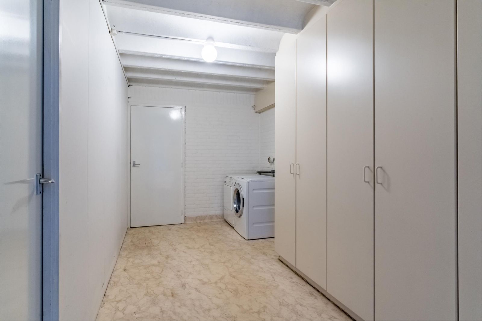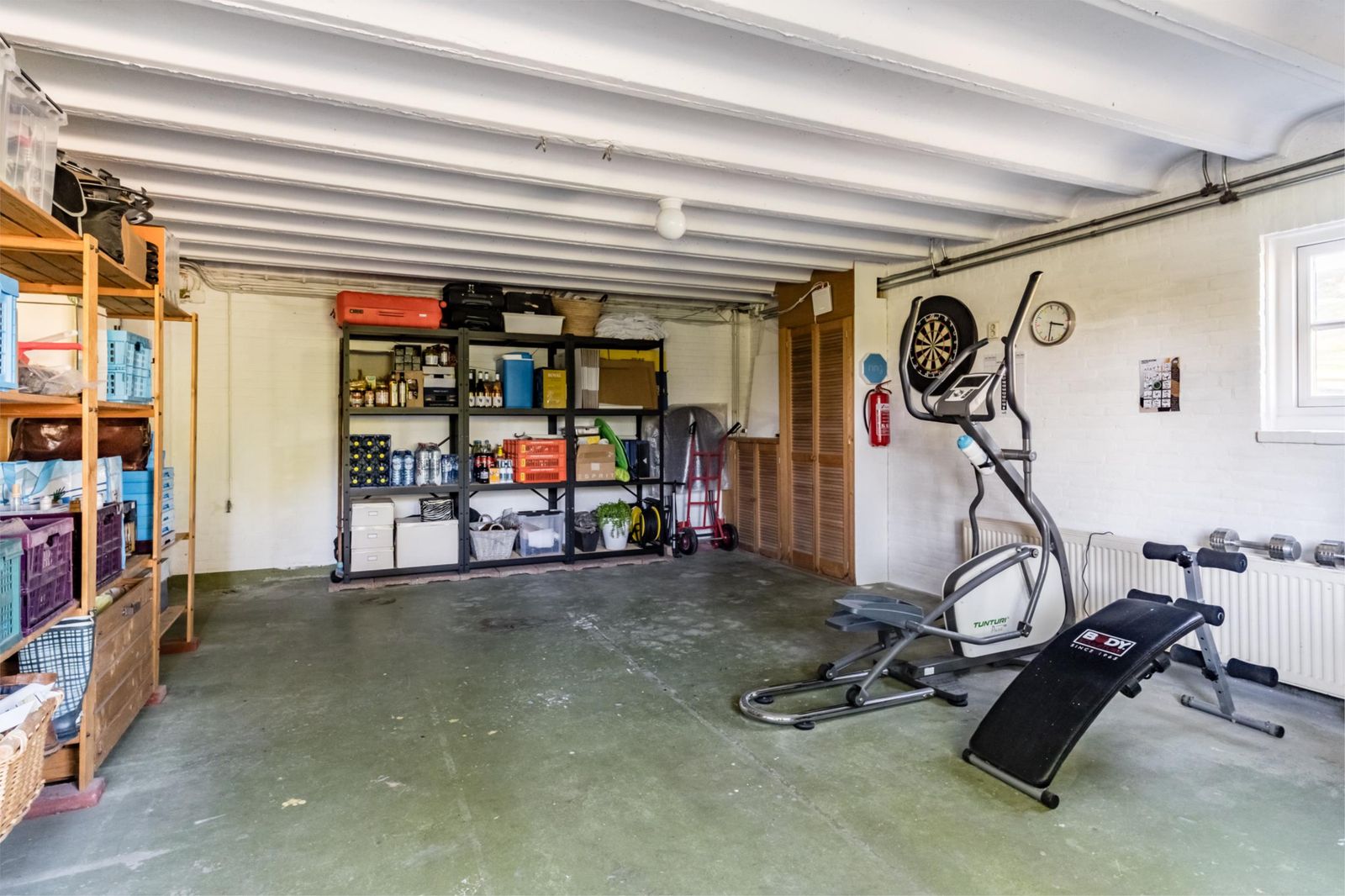 Souterrain/benedenverdieping: ruime garage/hobbyruimte met verwarming en water, wasruimte en bijkeuken met inbouwkasten, CV-ketelberging met veel ruimte voor opslag, (gasten) slaapkamer met badkamer en suite met douche en toilet.
