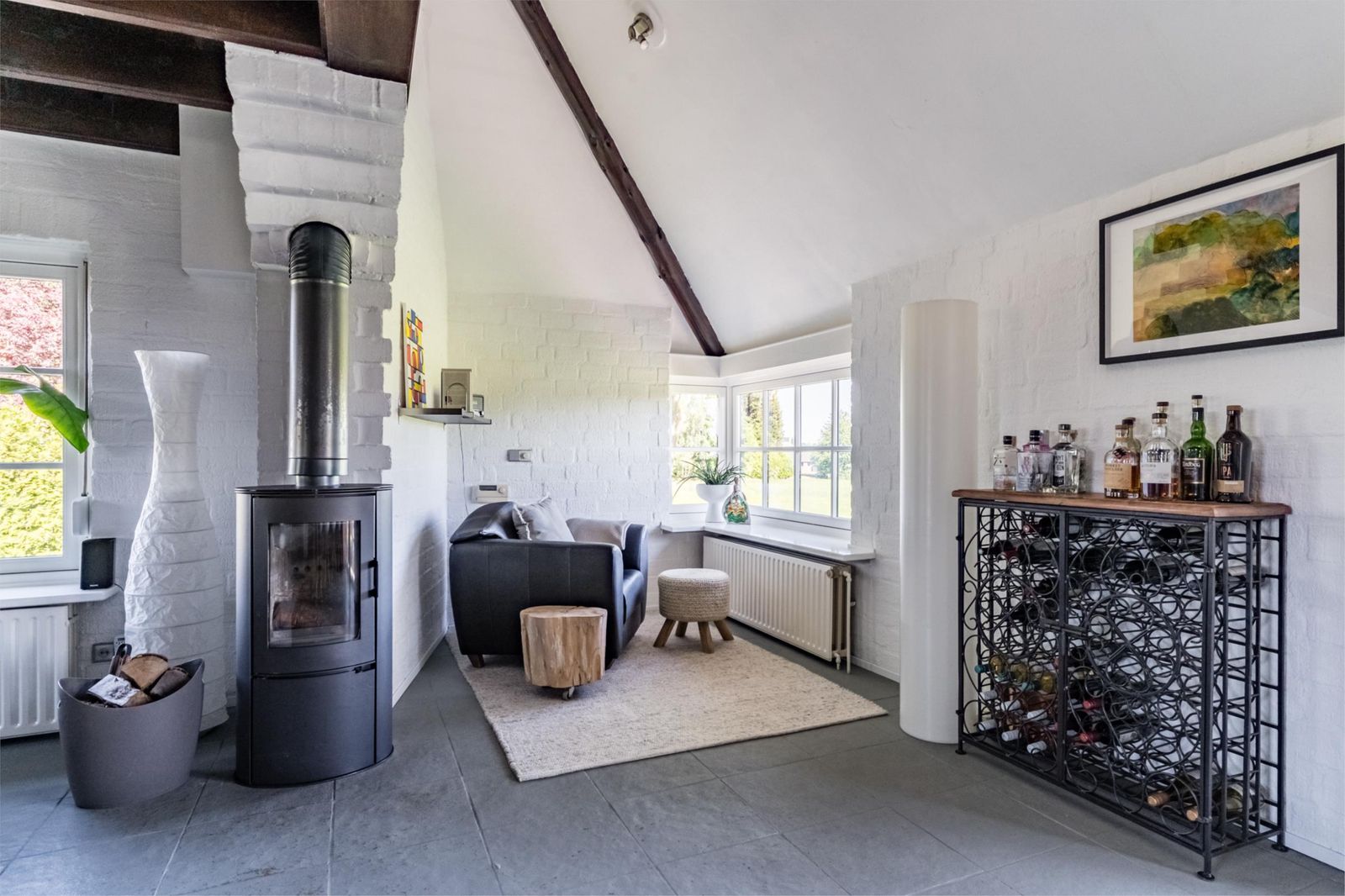 - c.v.-ketel, houtkachel, vloerverwarming gedeeltelijk