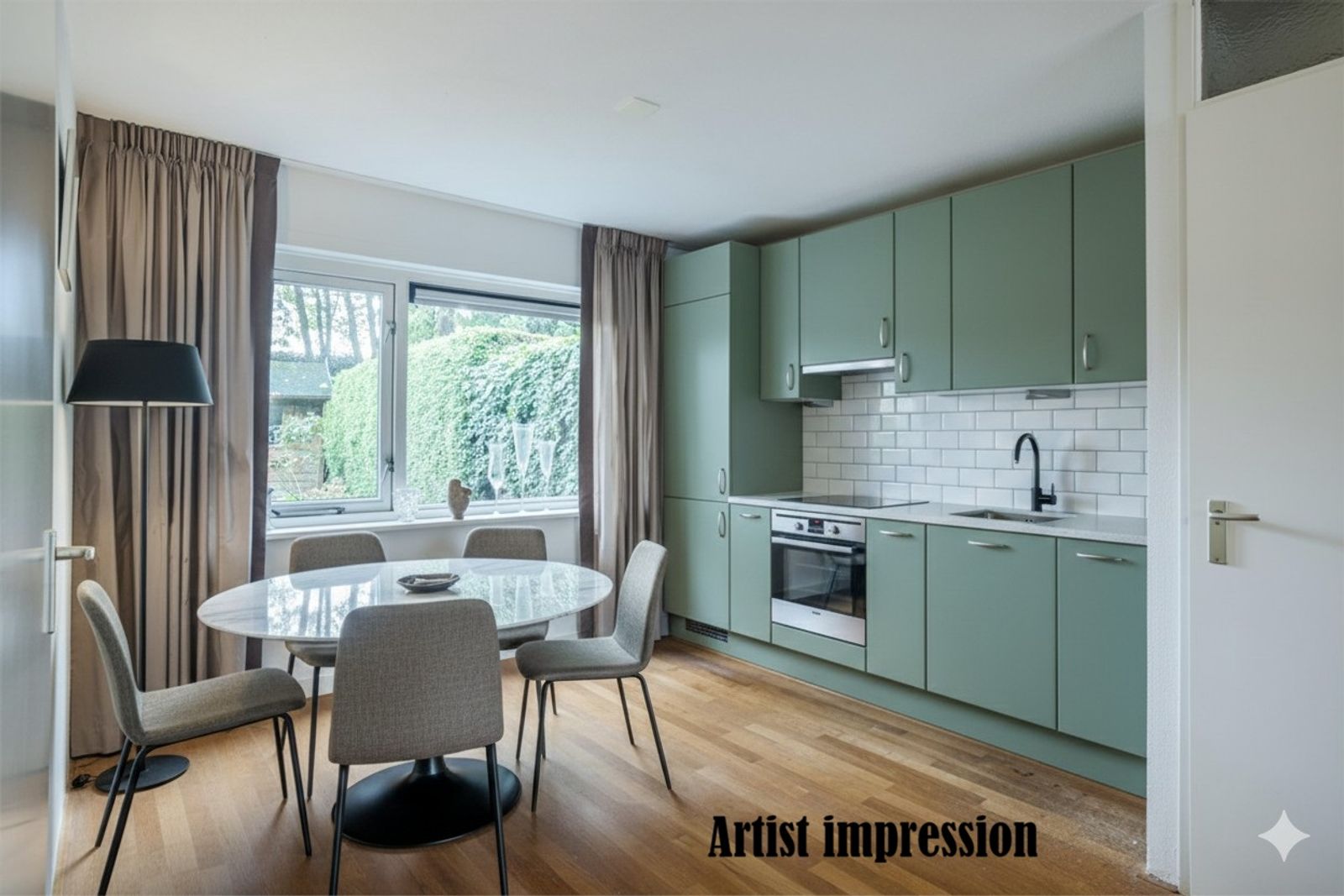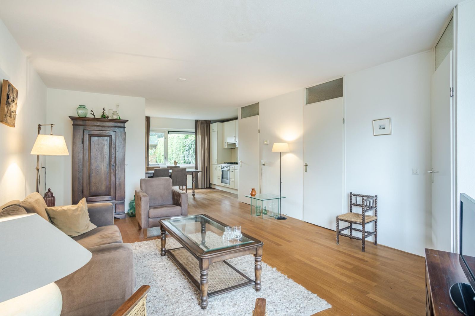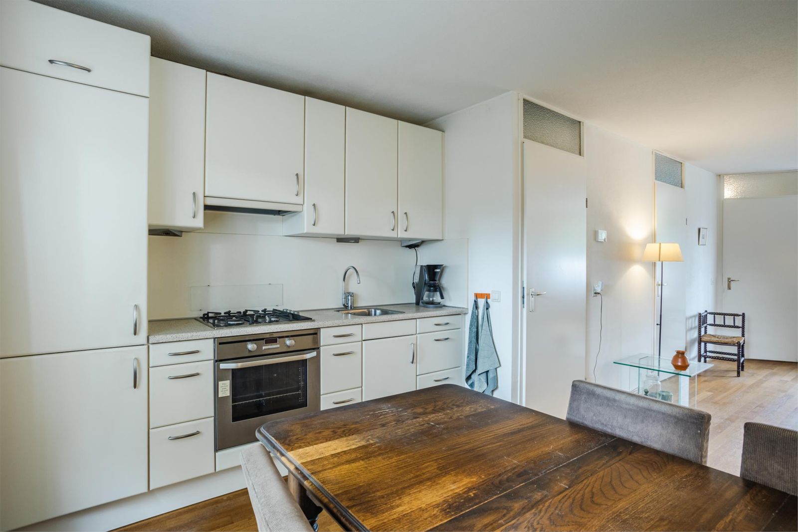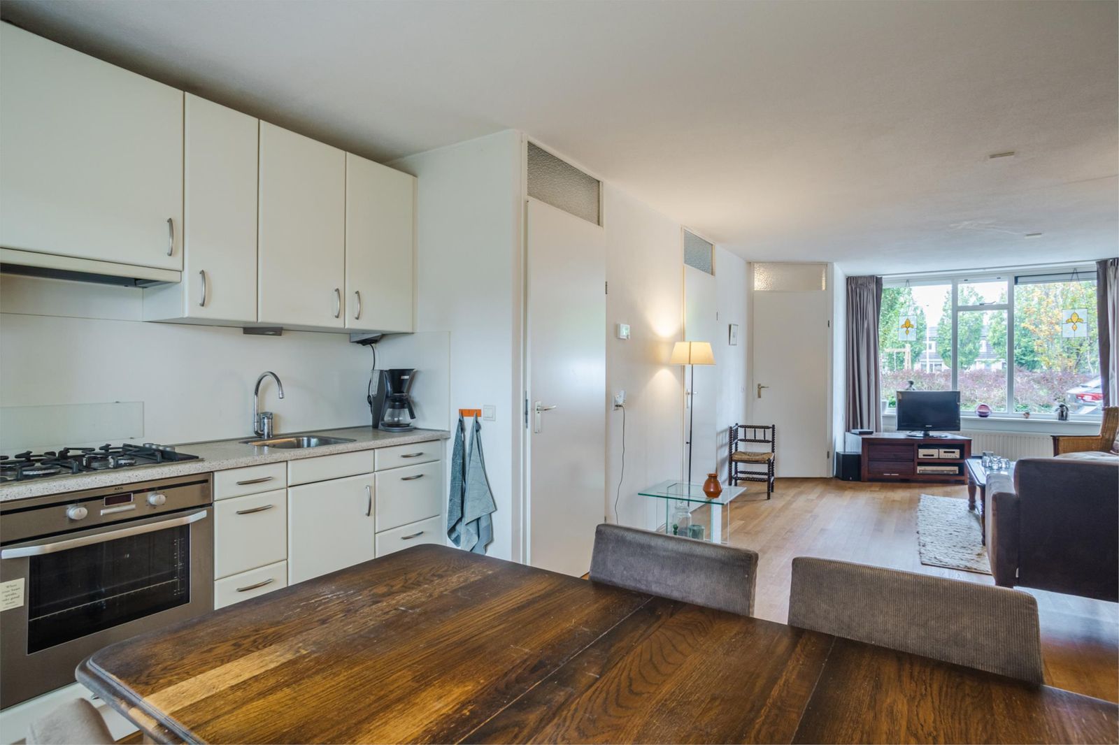 Je stapt de woning binnen via de hal met meterkast en komt vervolgens in de gezellige woonkamer. Dankzij de grote ramen is het hier heerlijk licht, met een prettig uitzicht op het hofje. De woonkamer loopt soepel over in de open keuken aan de achterzijde.
