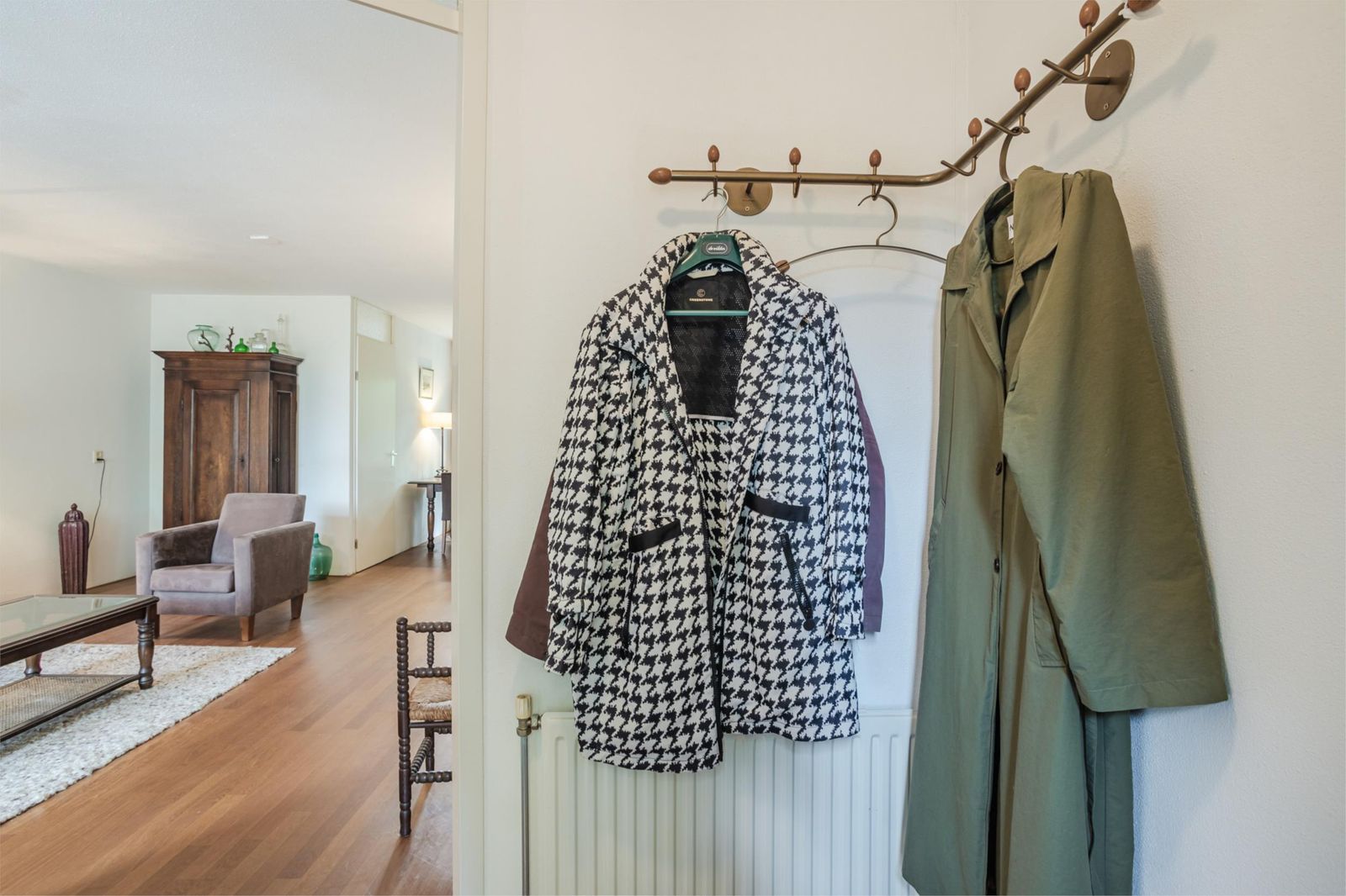Via de tussenhal bereik je het toilet en de trap naar de verdieping.