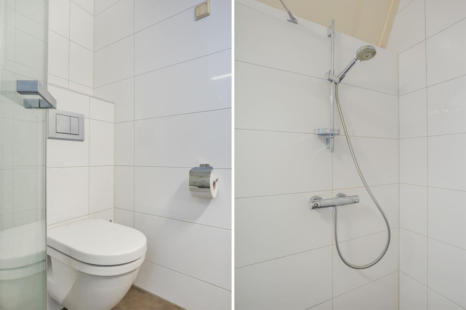 De badkamer is compleet ingericht met douche, wastafelmeubel en tweede toilet.