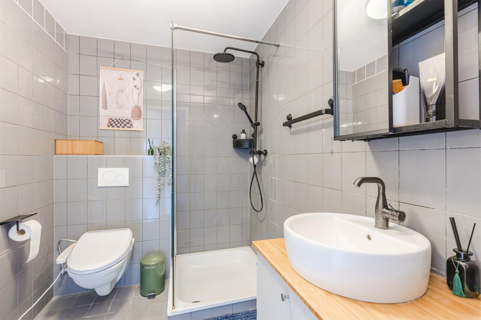 - Ruime en moderne badkamer met aparte bergruimte en wasmachine-aansluiting;