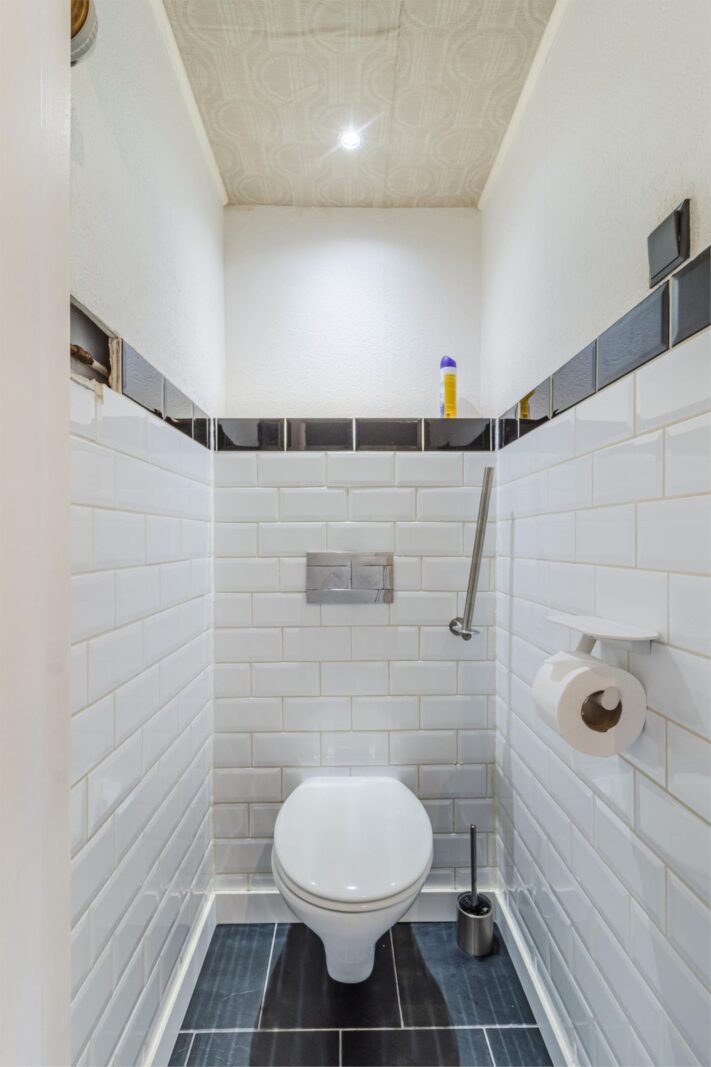 Via de hal (2,24m. x 2,10m.) heeft u direct toegang tot de moderne keuken (2,24m. x 2,55m.) De keuken is gerenoveerd in 2024 en voorzien van een elektrische kookplaat, elektrische oven en een wasmachine. In de hal bevindt zich de koelkast en een separaat toilet (0,86m. x 1,19m.).