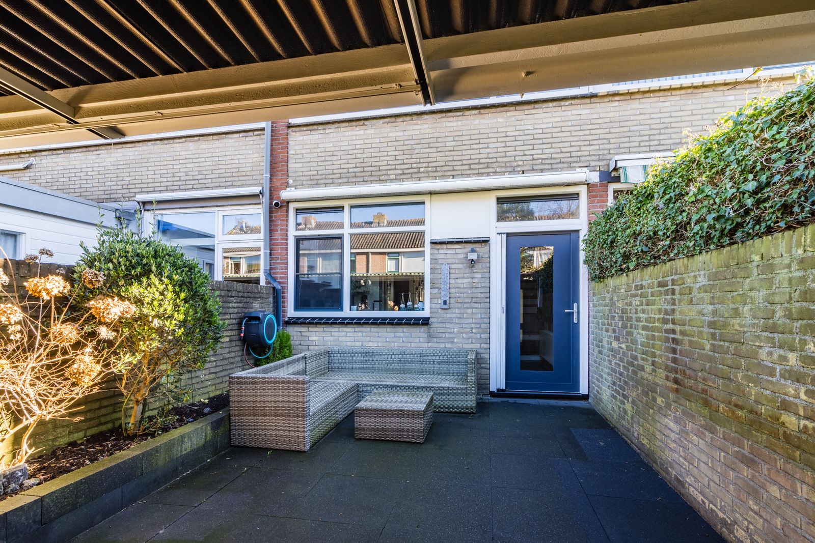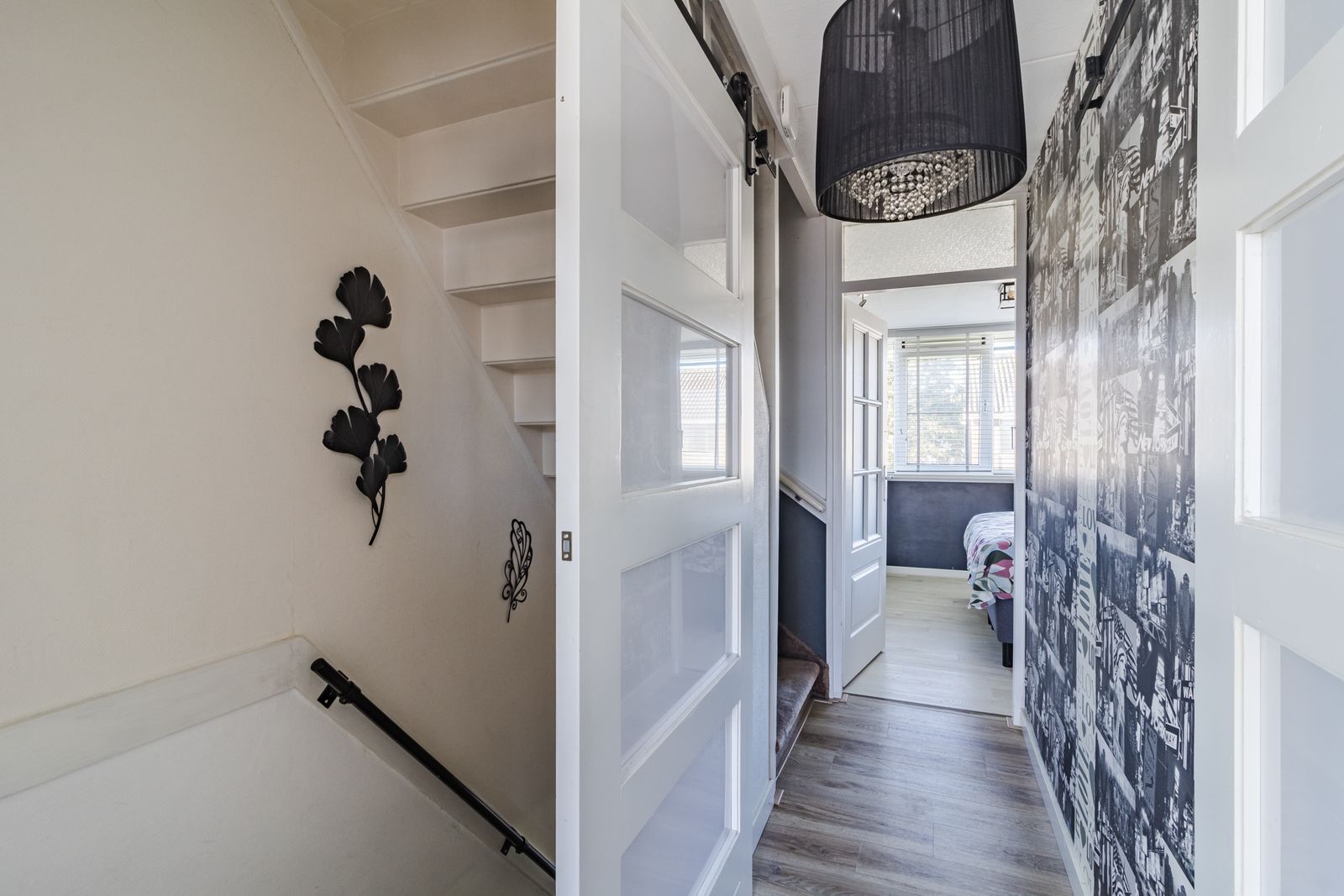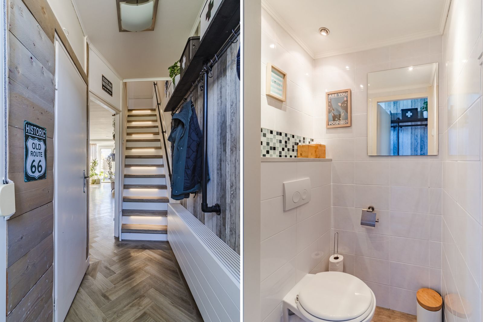 Via de diepe voortuin, voorzien van een veranda en een stenen berging (ca. 2.85 x 2.20) met vernieuwde dakbedekking, bereikt u de entree van de woning. In de hal bevinden zich de meterkast, de trapopgang en een moderne toiletruimte.