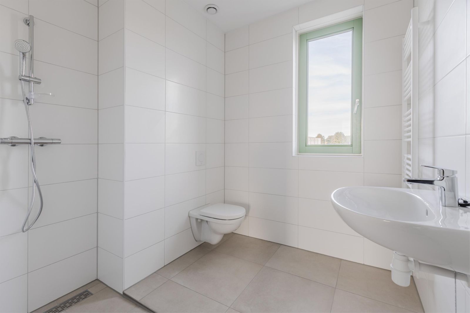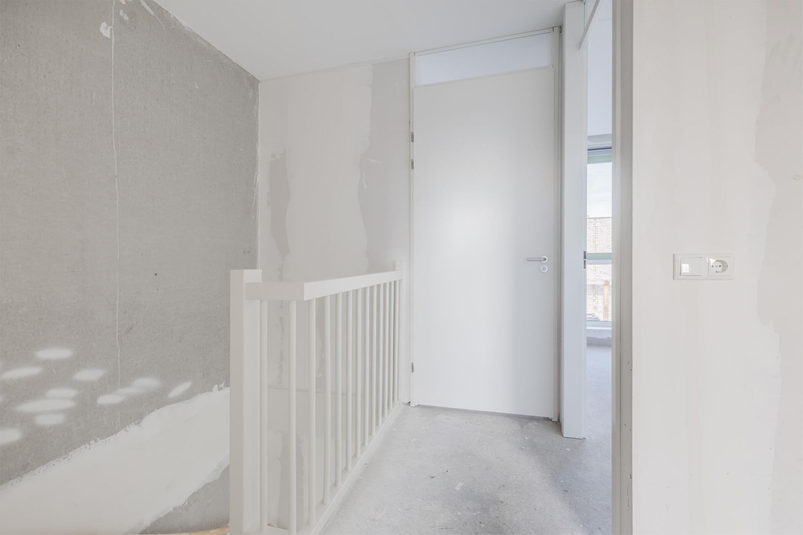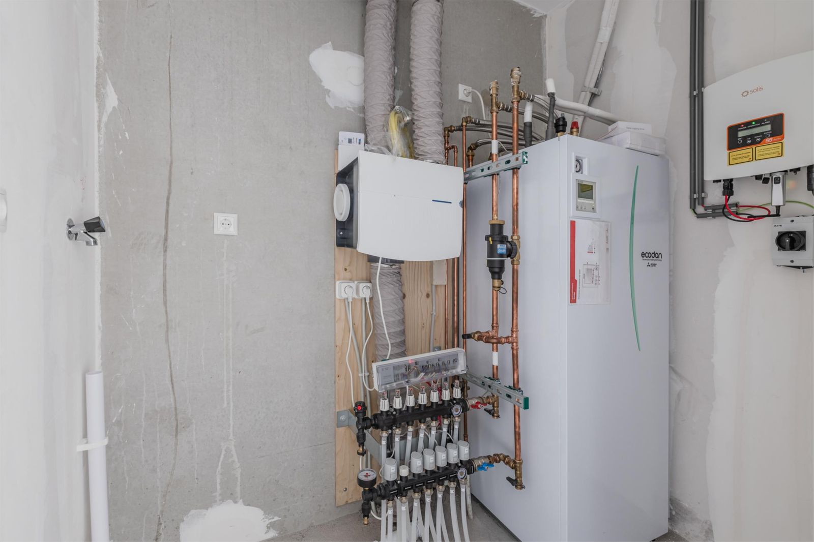 Overloop, drie slaapkamers, technische ruimte en een badkamer. De badkamer is voorzien van een wastafel, toilet en douche. Technische ruimte, voor het buffervat voor warm water, warmtepomp, verdeler vloerverwarming, ventilatie unit en opstelplaats voor de wasmachine