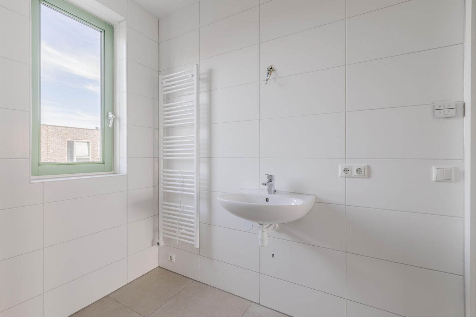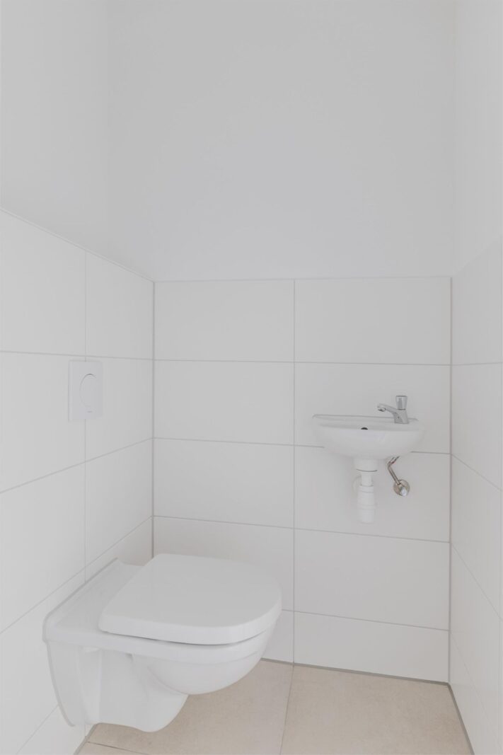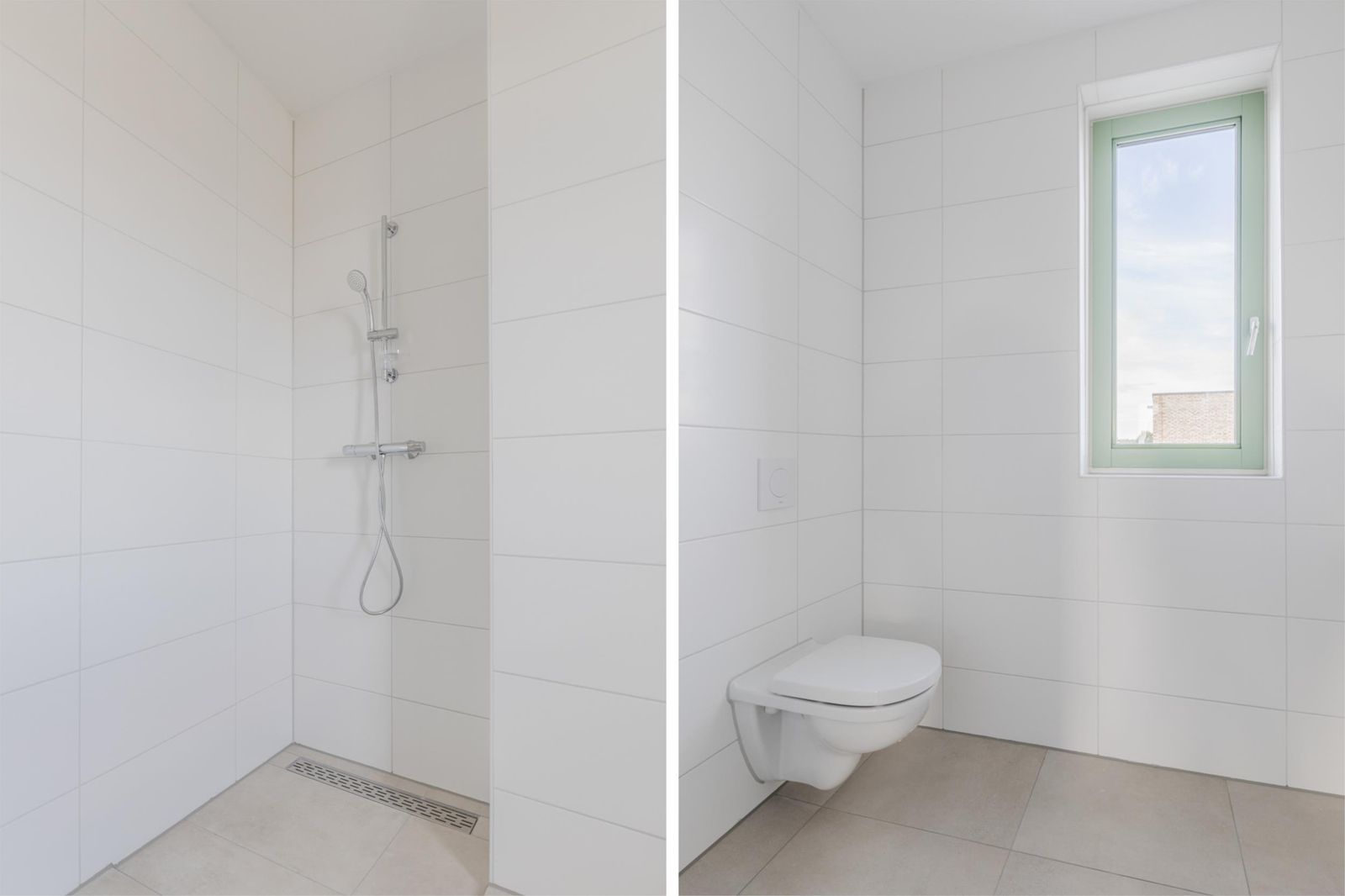 Overloop, drie slaapkamers, technische ruimte en een badkamer. De badkamer is voorzien van een wastafel, toilet en douche. Technische ruimte, voor het buffervat voor warm water, warmtepomp, verdeler vloerverwarming, ventilatie unit en opstelplaats voor de wasmachine