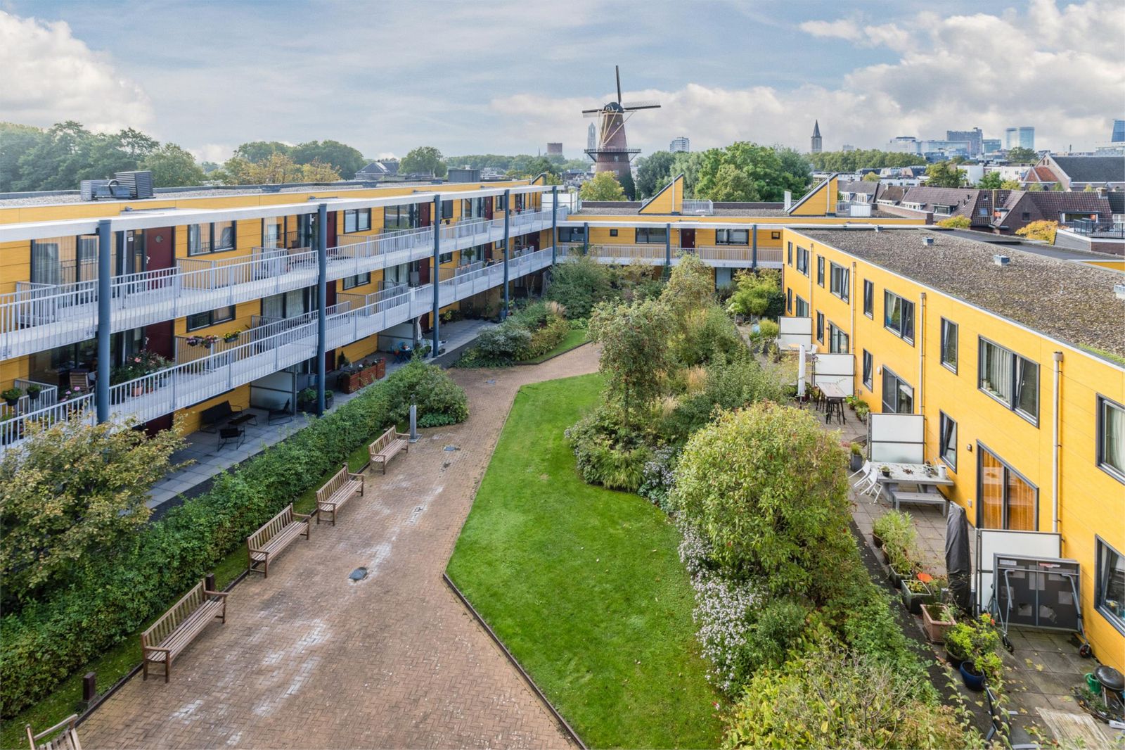 Aan de straatzijde bevindt zich een charmant Frans balkon met fraai uitzicht, terwijl je aan de tuinzijde geniet van een ruim balkon/terras dat tot de best gelegen van het complex behoort: heerlijk beschut én de hele dag zon. Een zeldzame combinatie in de stad.
