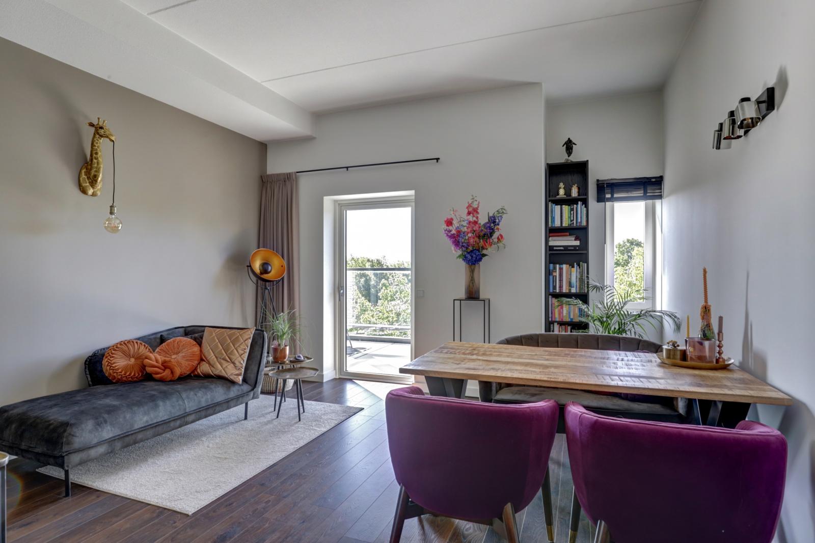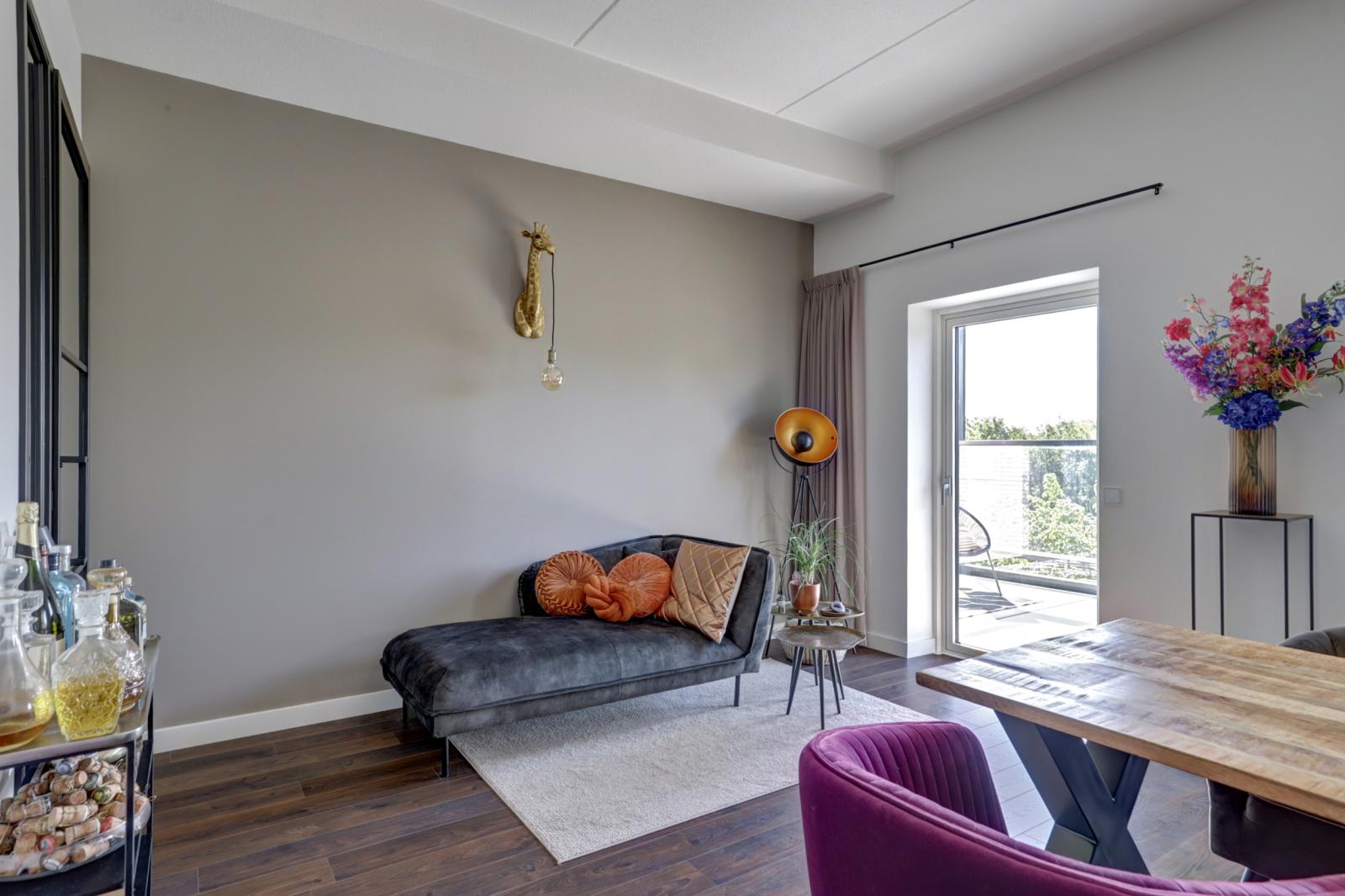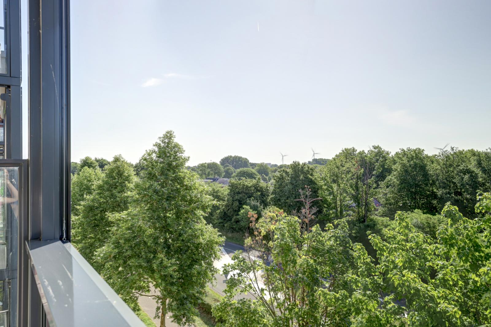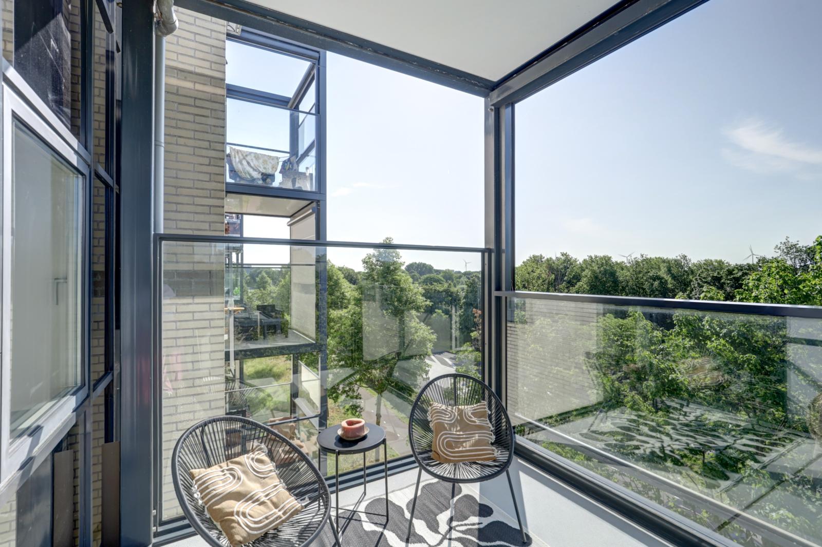 Via de woonkamer kom je op het balkon van 9 m², gelegen op het zuidoosten. Dankzij het in hoogte verstelbare raam kun je hier al vroeg in het jaar van de zon genieten.