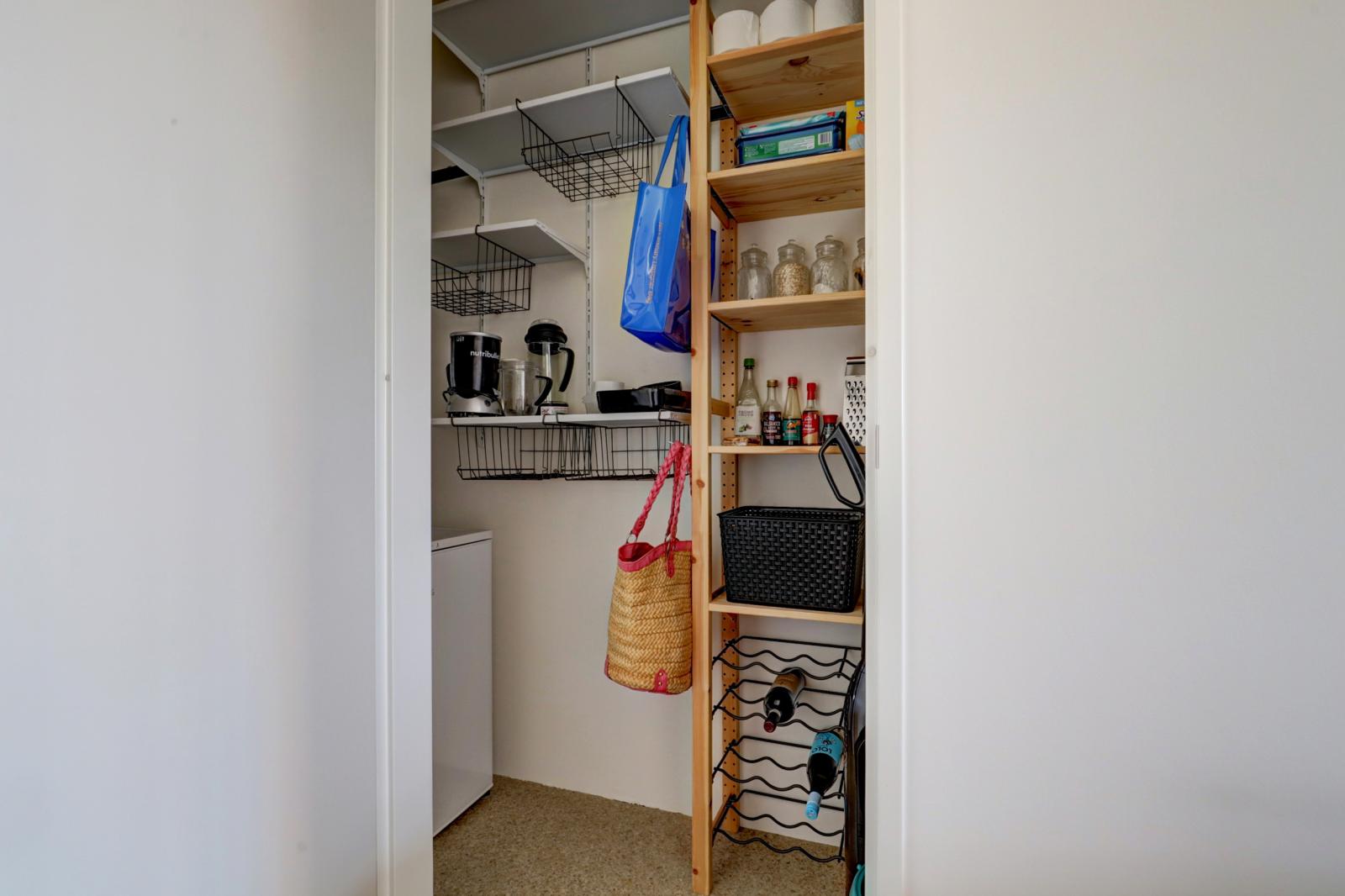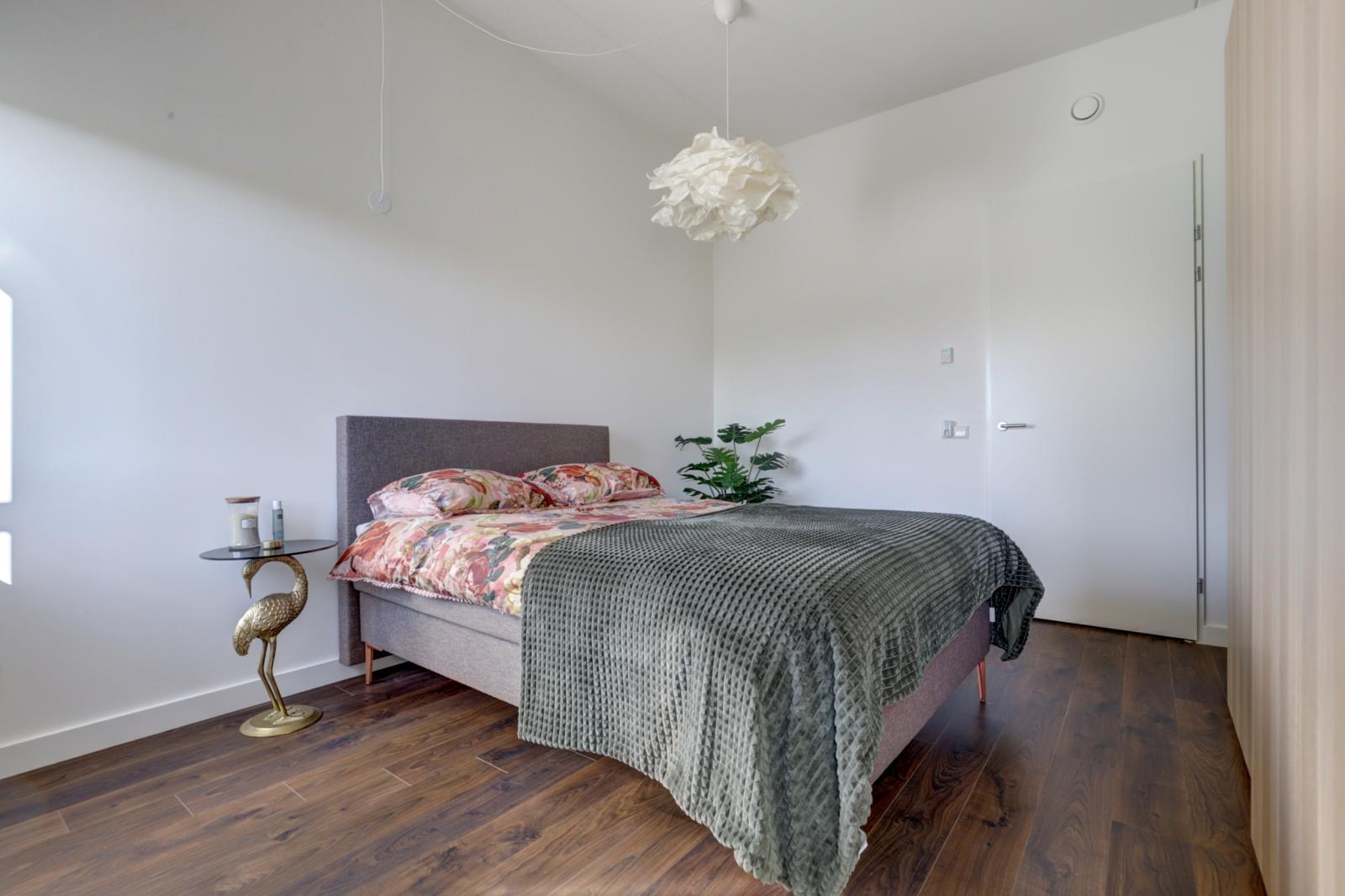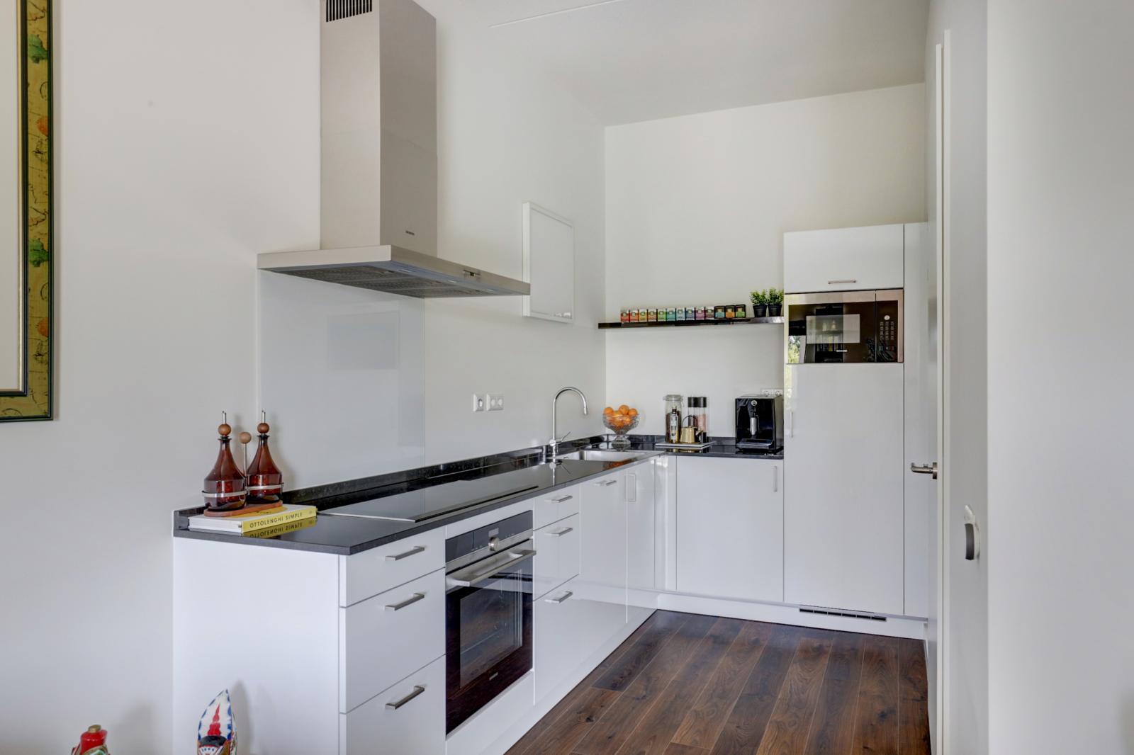 De woonkamer is ongeveer 20 m² groot en biedt genoeg ruimte voor zowel een zit- als een eethoek. Aangrenzend bevindt zich de moderne open keuken, die is uitgerust met diverse inbouwapparatuur. Vanuit de keuken heb je toegang tot de praktische bijkeuken, waar je al je voorraad makkelijk kunt opbergen.
