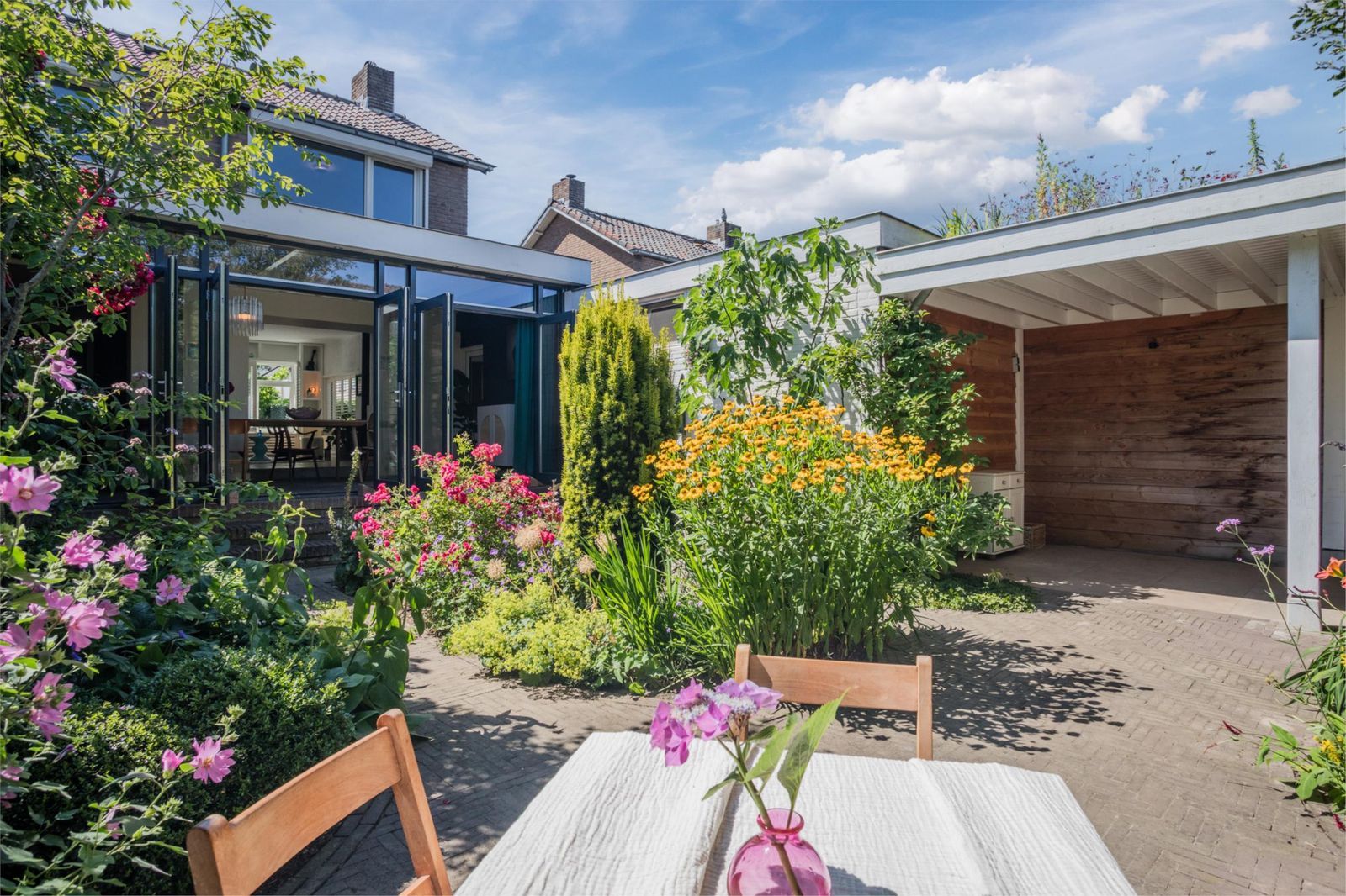 - hoekwoning met kleurrijke tuinen, liefdevol aangelegd door professionals