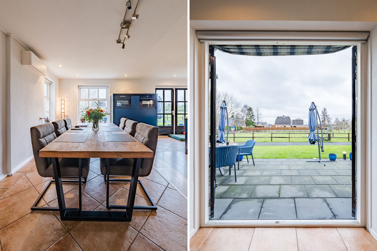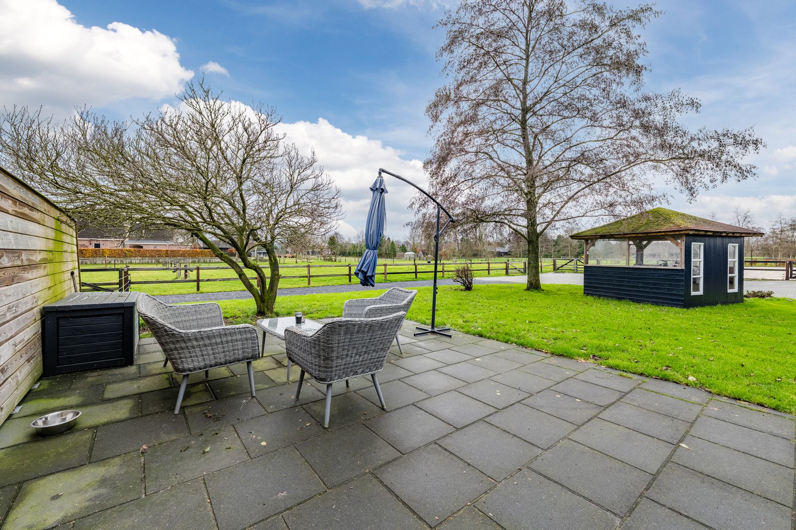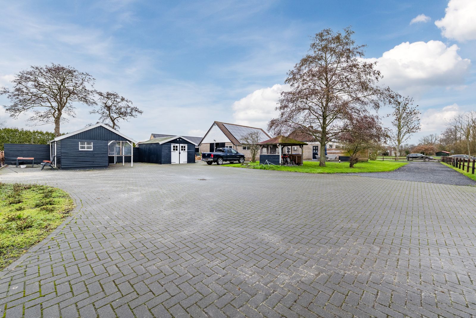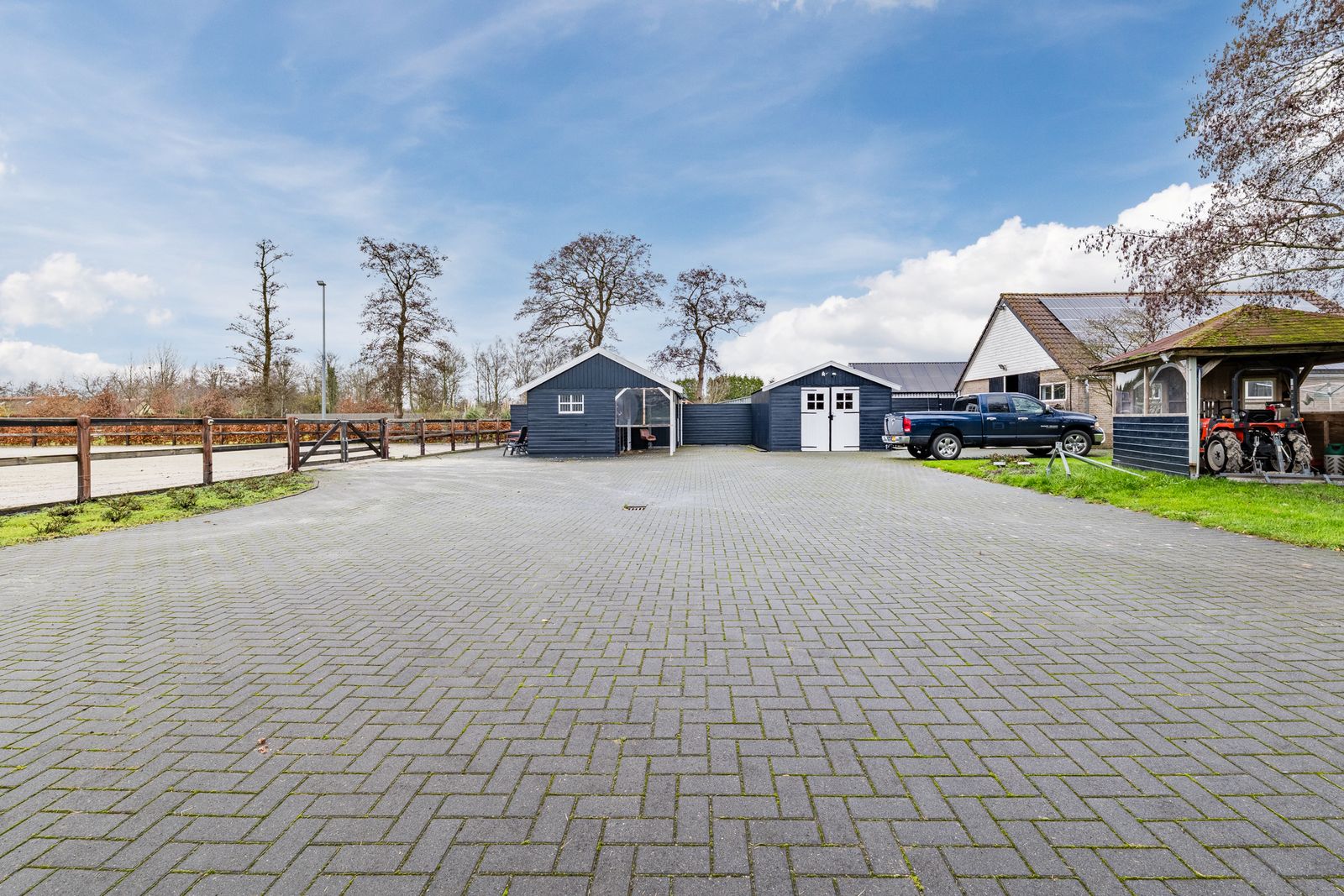 Het stenen bijgebouw (voorheen voor schapen, koeien en werkruimte) is aan de binnenkant volledig gemoderniseerd met 2 luxe halfopen paardenboxen met Mayo-matrassen en verwarmd drinkwater, een was/poets-plaats met warm en koud water, evenals een open tackroom. De mestplaat bevindt zich direct aansluitend aan dit bijgebouw. Er kan desgewenst een derde paardenbox geplaatst worden in dit gedeelte van het bijgebouw. Er is eveneens een nieuwe berging gerealiseerd voor o.a. fietsen, brommers en verdere opslagruimte. De werkruimte is in tact gebleven maar kan ook ingericht worden als garage; de toegang daarvoor is aanwezig (openslaande deuren). Op het stenen bijgebouw liggen 30 zonnepanelen. Er is een zolder in het bijgebouw voor opslagruimte, gedeeltelijk ook afsluitbaar en geïsoleerd.