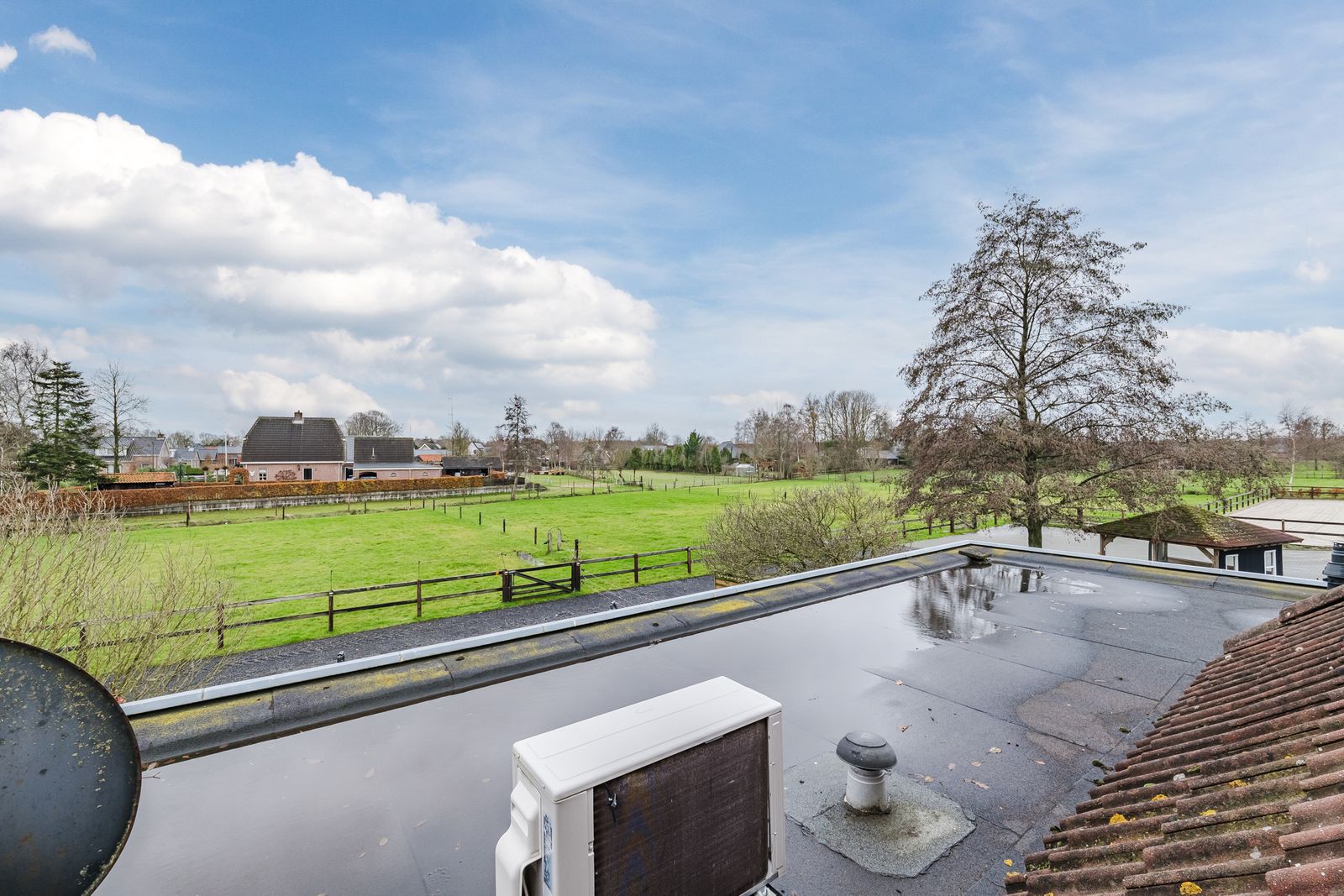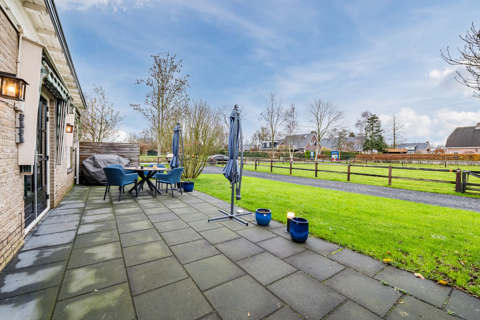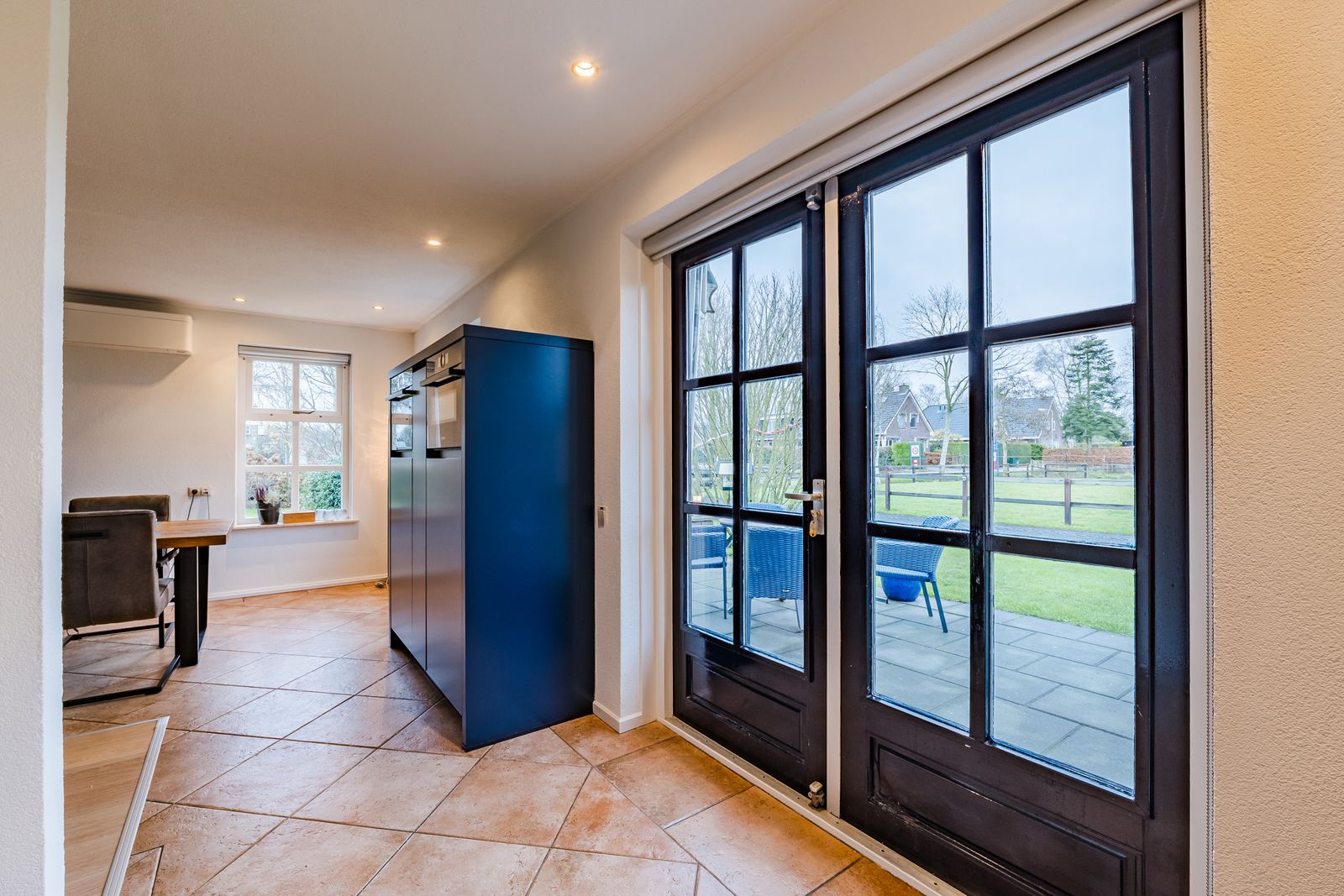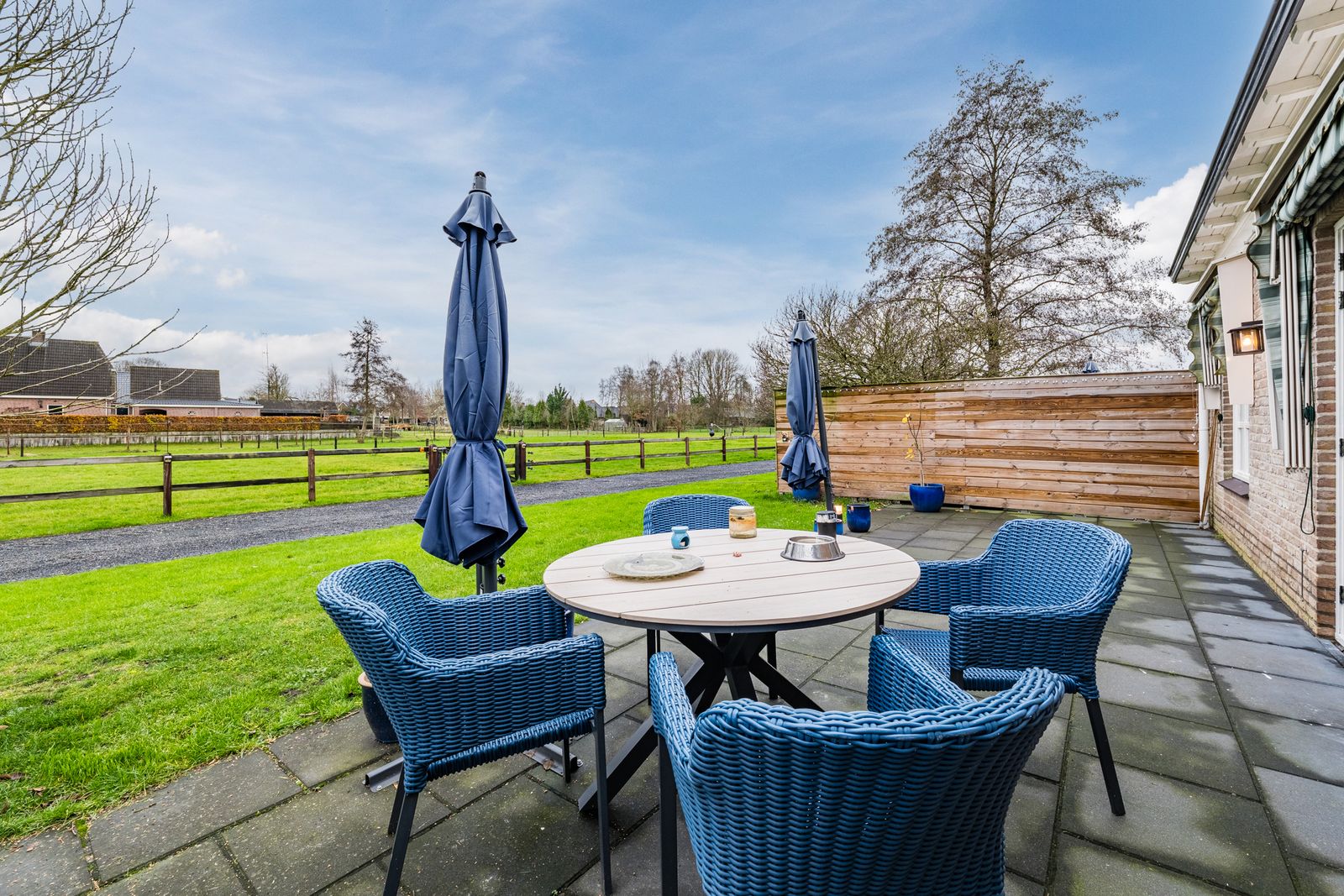 Het stenen bijgebouw (voorheen voor schapen, koeien en werkruimte) is aan de binnenkant volledig gemoderniseerd met 2 luxe halfopen paardenboxen met Mayo-matrassen en verwarmd drinkwater, een was/poets-plaats met warm en koud water, evenals een open tackroom. De mestplaat bevindt zich direct aansluitend aan dit bijgebouw. Er kan desgewenst een derde paardenbox geplaatst worden in dit gedeelte van het bijgebouw. Er is eveneens een nieuwe berging gerealiseerd voor o.a. fietsen, brommers en verdere opslagruimte. De werkruimte is in tact gebleven maar kan ook ingericht worden als garage; de toegang daarvoor is aanwezig (openslaande deuren). Op het stenen bijgebouw liggen 30 zonnepanelen. Er is een zolder in het bijgebouw voor opslagruimte, gedeeltelijk ook afsluitbaar en geïsoleerd.