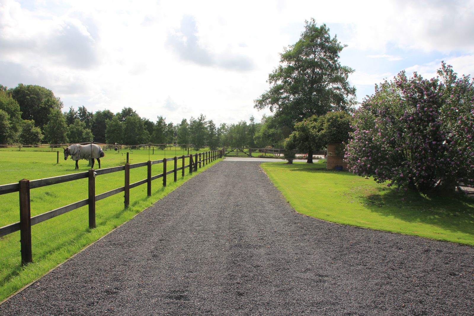 De oprijlaan (basalt) naast het weiland is verbreed en opnieuw aangelegd in januari 2020