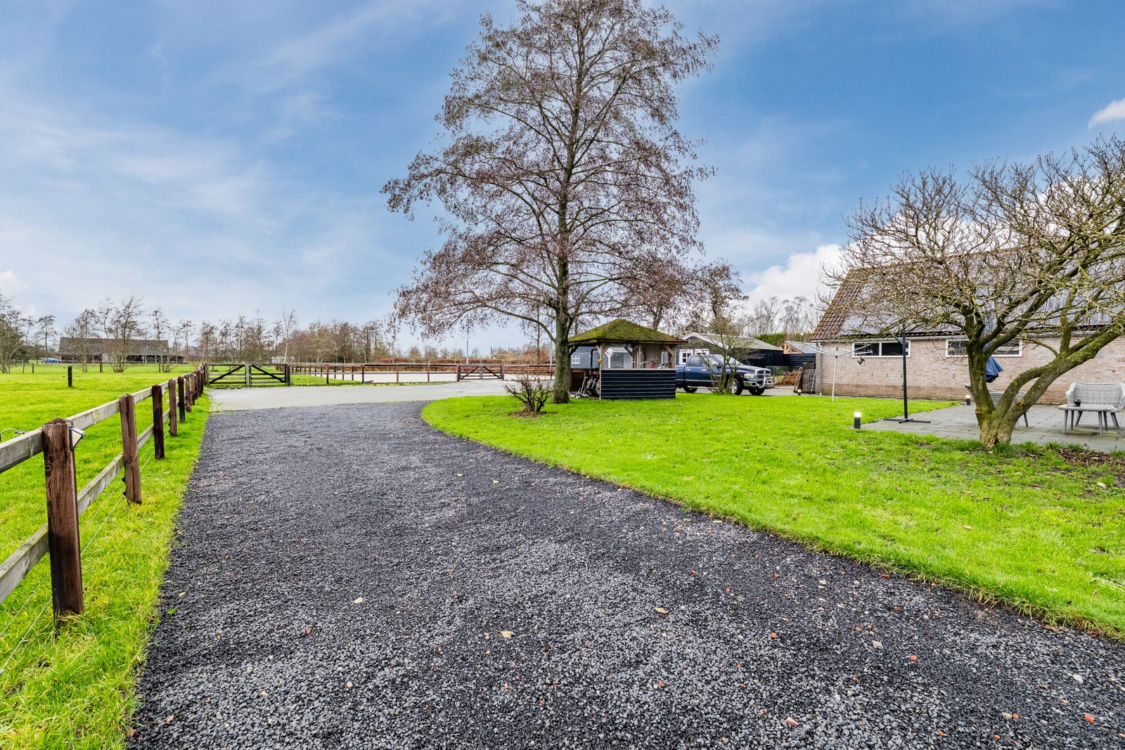 Het gehele perceel is opnieuw omheind met hout en natuurdraad en daarmee o.a. veilig voor kinderen en dieren (honden en paarden). Er zijn twee elektrische toegangspoorten met afstandsbediening. De gehele bestrating (inclusief terrassen) op het perceel is vernieuwd en verruimd, evenals de oprijlaan naast het weiland. Er kunnen aan de voorkant van de woonboerderij gemakkelijk drie auto's geplaatst worden op eigen terrein. Het terrein aan de achterkant is groot genoeg om meerdere auto's, een vrachtwagen en/of een trailer te parkeren en te draaien. Het gehele perceel (bouwvak) bevat nieuwe buitenverlichting. De omliggende tuin is ook volledig nieuw aangelegd.