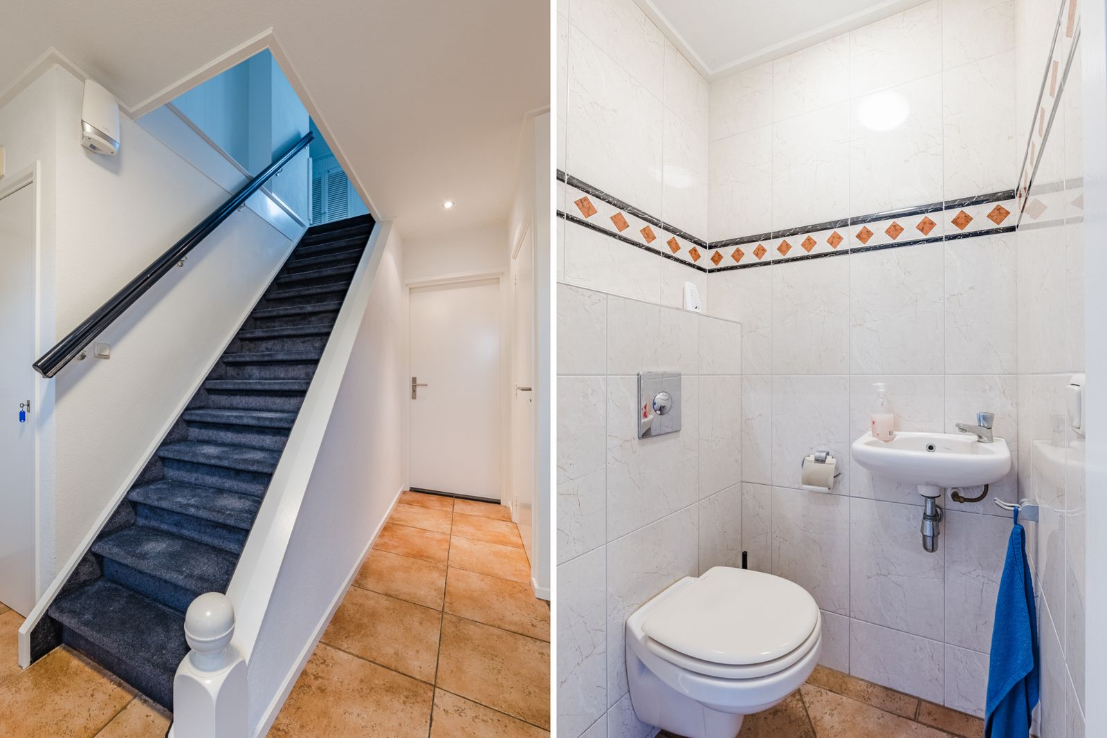 Begane grond: hal, toilet 1, slaapkamer, woonkamer, woonkeuken met openslaande deuren naar het terras, badkamer, bijkeuken en toilet 2