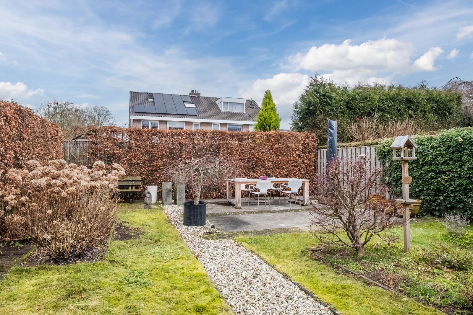 -Mooi, ruim aangelegde tuin, waarin altijd wel een plekje is om in de zon te zitten;