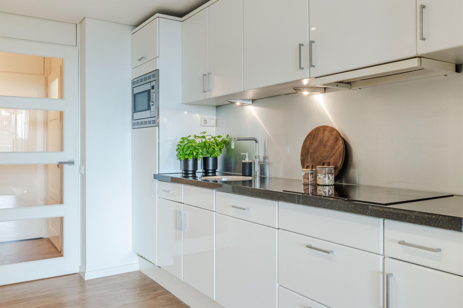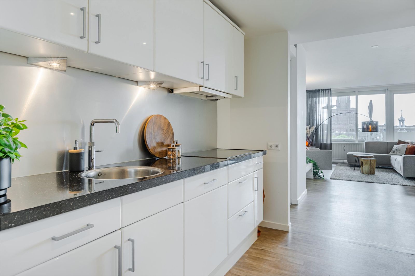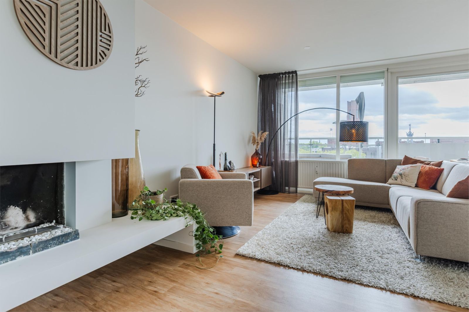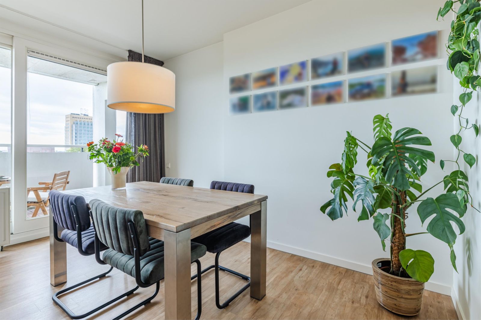 Via de woonkamer stapt u het ruime balkon op, gelegen op het zuidoosten. Hier geniet u van de ochtendzon, het uitzicht op het groene Moreelsepark en de levendigheid van de stad.
