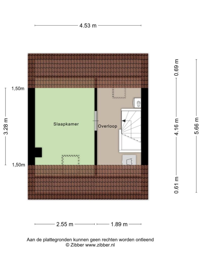 Via een vaste trap bereik je de tweede verdieping, die dankzij het hoge, schuine dak goed bruikbaar is. Op de overloop bevinden zich de cv-ketel en de aansluitingen voor wasapparatuur. Een dakraam zorgt hier voor natuurlijk licht. De aangrenzende slaapkamer heeft eveneens een dakraam. De hele verdieping is voorzien van laminaat en kan naar wens worden ingericht als extra slaapkamer, werkruimte, hobbykamer of sportruimte.