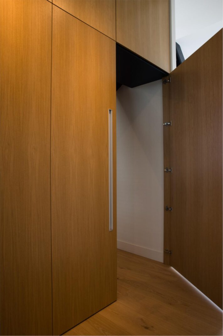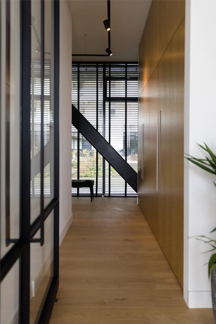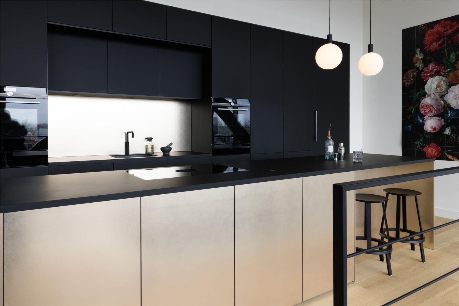 De keuken is een droom voor elke kookliefhebber. Volledig uitgerust met Siemens oven, stoomoven, koel- en vriescombinatie, warmhoudplaten, Bora kookplaat, Quooker en Miele wijnkoeler. Een plek waar koken en gezelligheid samenkomen, want aan de ruime bar is plek voor vier personen – ideaal voor ontbijt, een snelle lunch of borrels met vrienden. Slim detail: achter een onopvallende deur in de keuken bevindt zich bovendien een ruime inpandige berging, perfect weggewerkt in het ontwerp.
