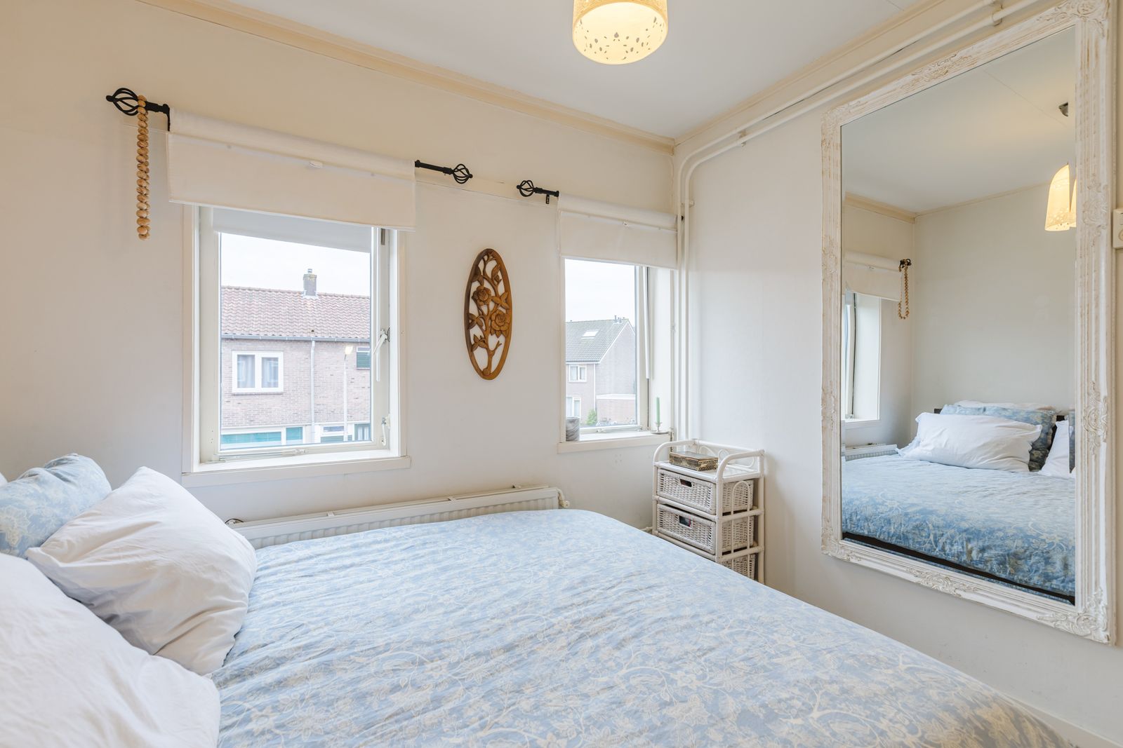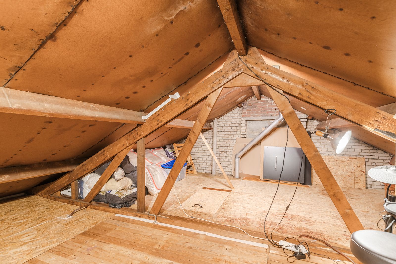 Drie ruime slaapkamers, netjes afgewerkt, en een eenvoudige badkamer, voorzien van een doucheruimte, wastafel en mechanische afzuiging, op de eerste verdieping. Een losse trap geeft toegang tot de bovenliggende vliering. De kap van de woning is niet geïsoleerd, maar de vloer van de vliering wel. De vliering biedt veel ruimte voor opslag, maar ook speelruimte voor kinderen.