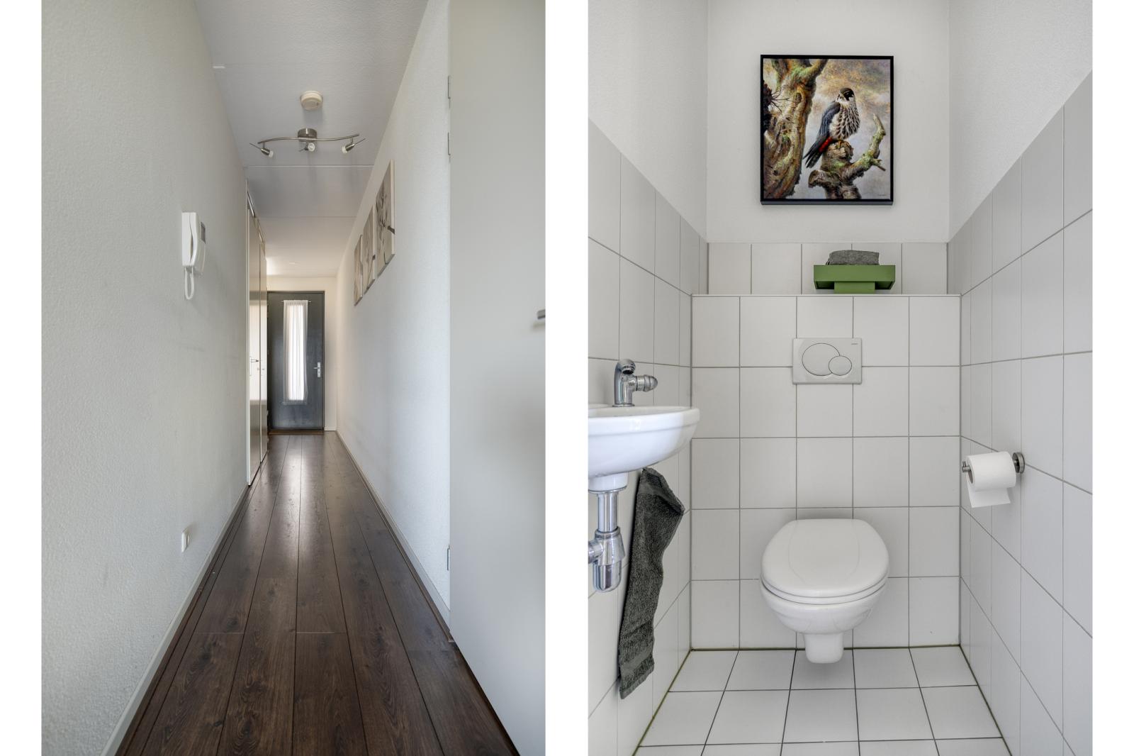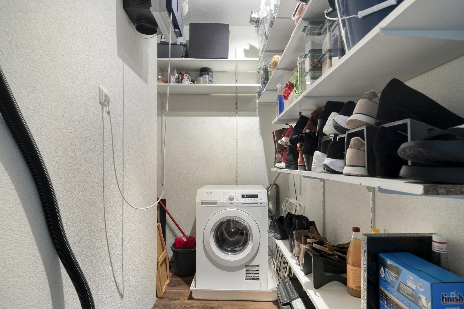 Verderop in de hal vind je de praktische berging, de keuken, het separate toilet en de badkamer.