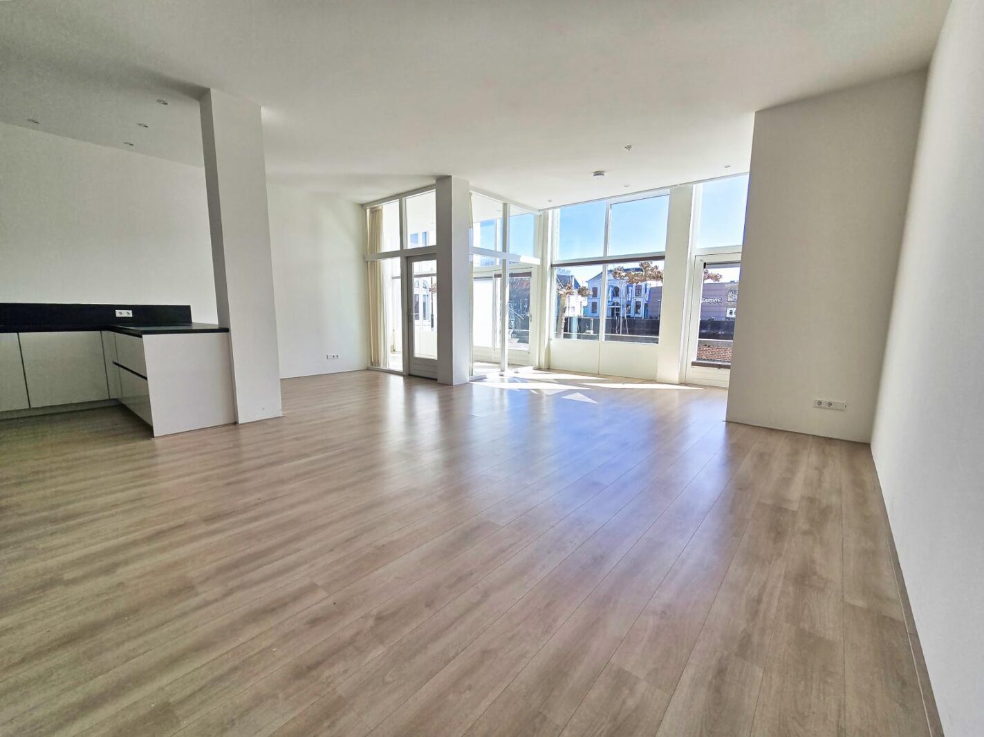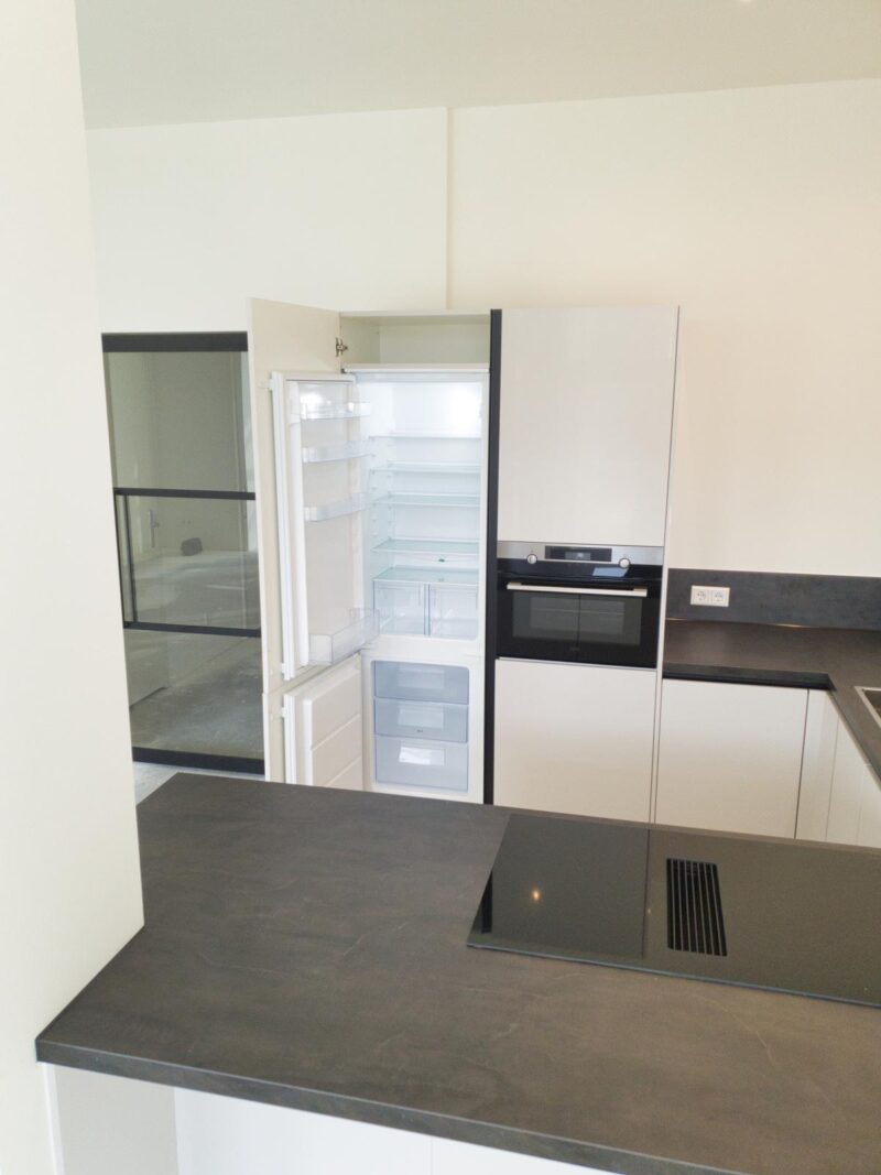 De woonkeuken is voorzien van een grote raampartij, van waar je uitzicht hebt over de jachthaven, het Arsenaal en de groene Boulevard. De keuken is van alle gemakken voorzien: Inductiekookplaat met afzuiging, koelkast, vriezer en vaatwasser.