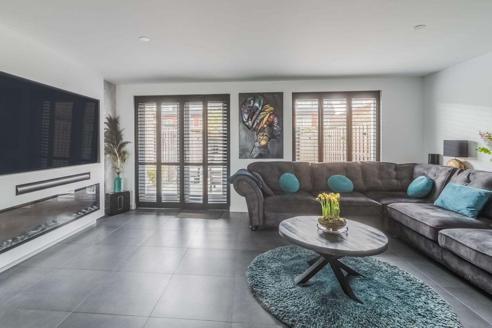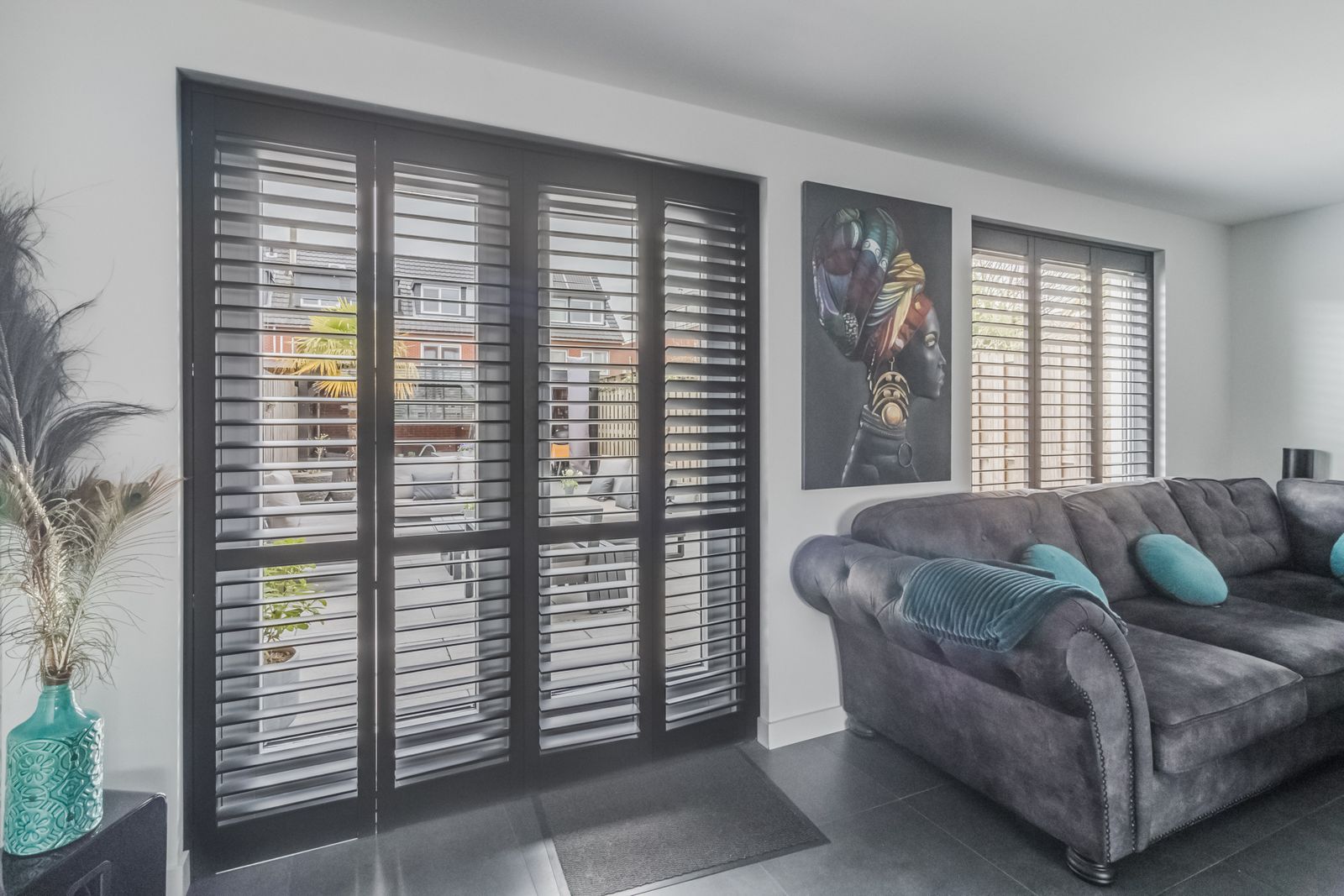 In 2023 is de woonkamer aan de tuinkant voorzien van op maat gemaakte shutters.