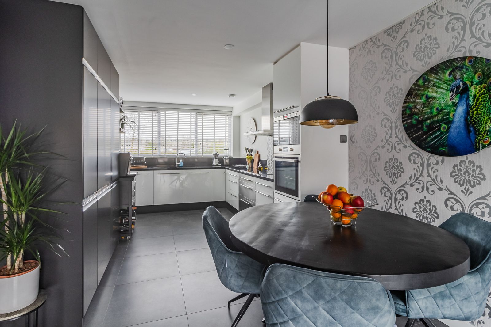 De open keuken aan de voorzijde is netjes en functioneel ingedeeld met volop kastruimte en een vrij uitzicht over het open veld aan de overkant. De keuken is in 2023 voorzien van een nieuwe kastenwand met hoge koelkast en aparte vrieskast met lades (Siemens).